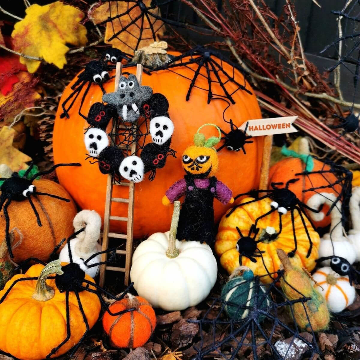 Hannibal Pumpkin felted Halloween hanging decoration by Felt So Good. Hand needle felted Halloween decoration.