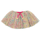 Rainbow Hearts Tutu by Mimi & Lula. Twirl into a world of wonder with this beautiful Rainbow hearts tutu. Layers of soft tulle scattered with multicoloured hearts sure to catch the light with every spin! Layers of soft neutral tulle scattered with multicoloured rainbow metallic hearts.