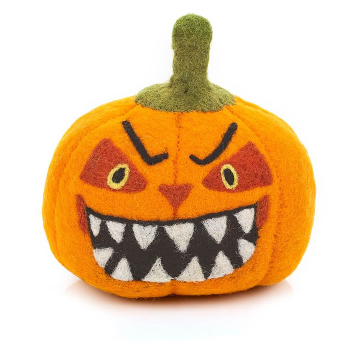 Scary pumpkin felted Halloween decoration by Felt So Good. Hand needle felted Halloween decoration. This large, playful pumpkin with his wicked smile would be perfect at welcoming trick-or-treaters this Halloween. A striking centerpiece to a seasonal display, plus a fabulous alternative to those who simply can't be bothered with the mess of the real deal.