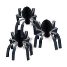 Set includes three large spider hanging decorations. Each spider has a large black honeycomb piece on the front of the body, and dangling honeycomb legs. The honeycomb body is kept open with hidden magnets. Black paperclips come ready to keep the spider legs neatly rolled up and secure when not in use.