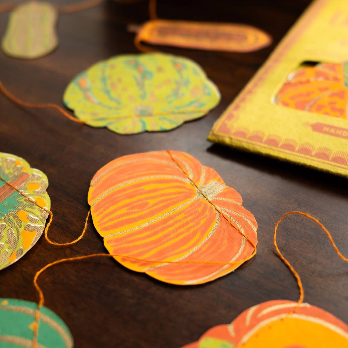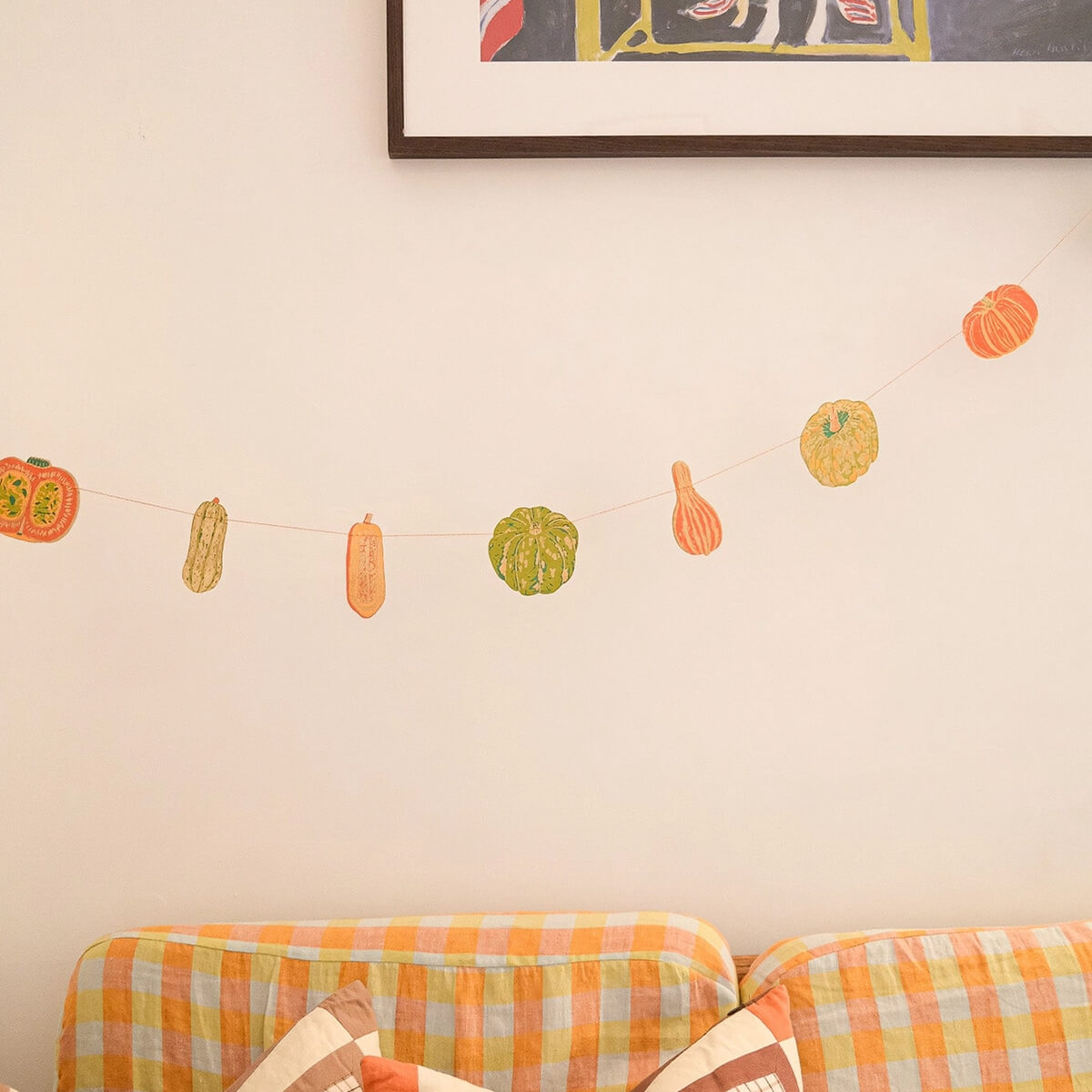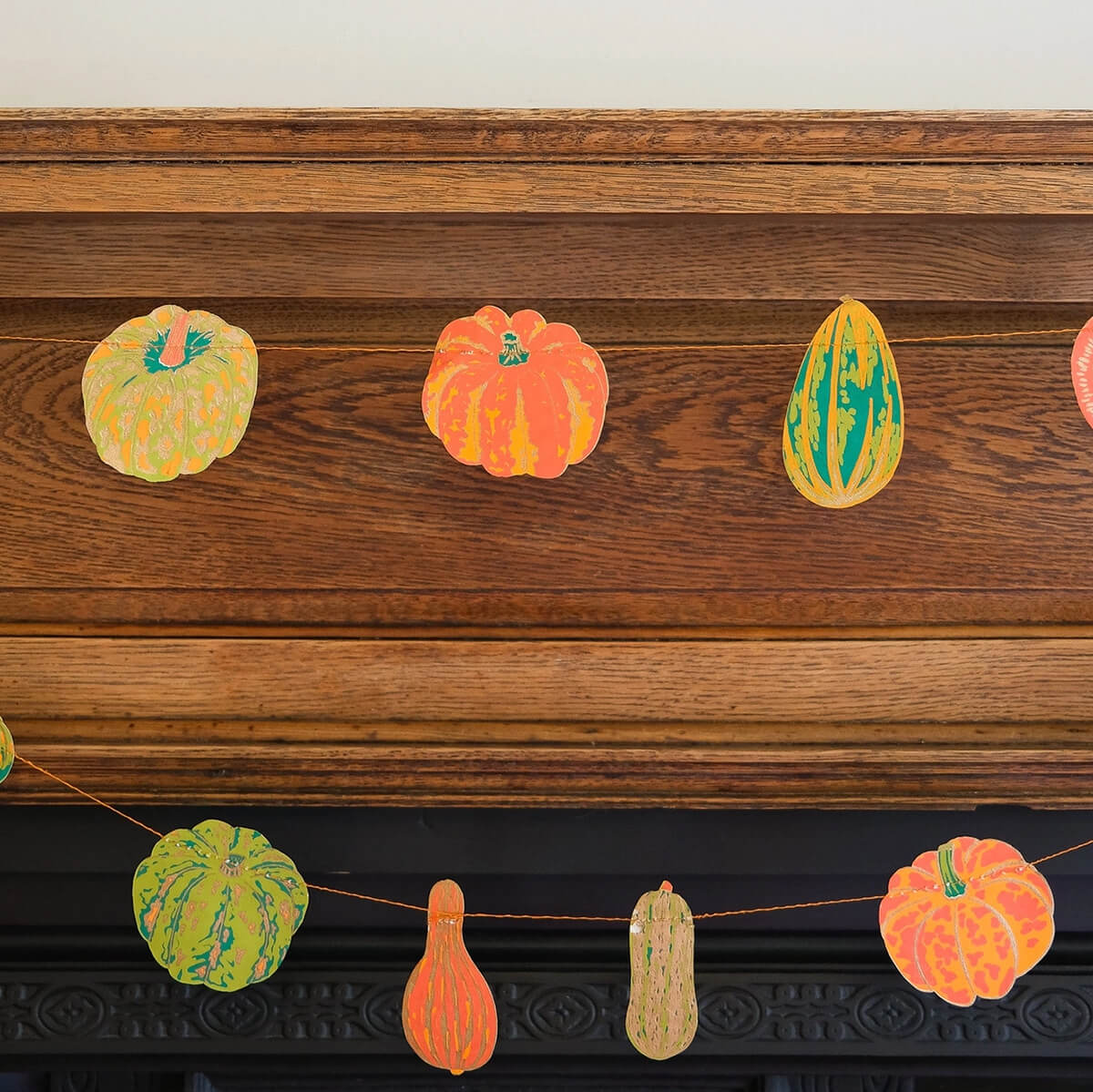 Squashes Paper Garland by East End Press. Pumpkins, squashes and gourds all adorn this garland, making it perfect for Autumn time festivities.