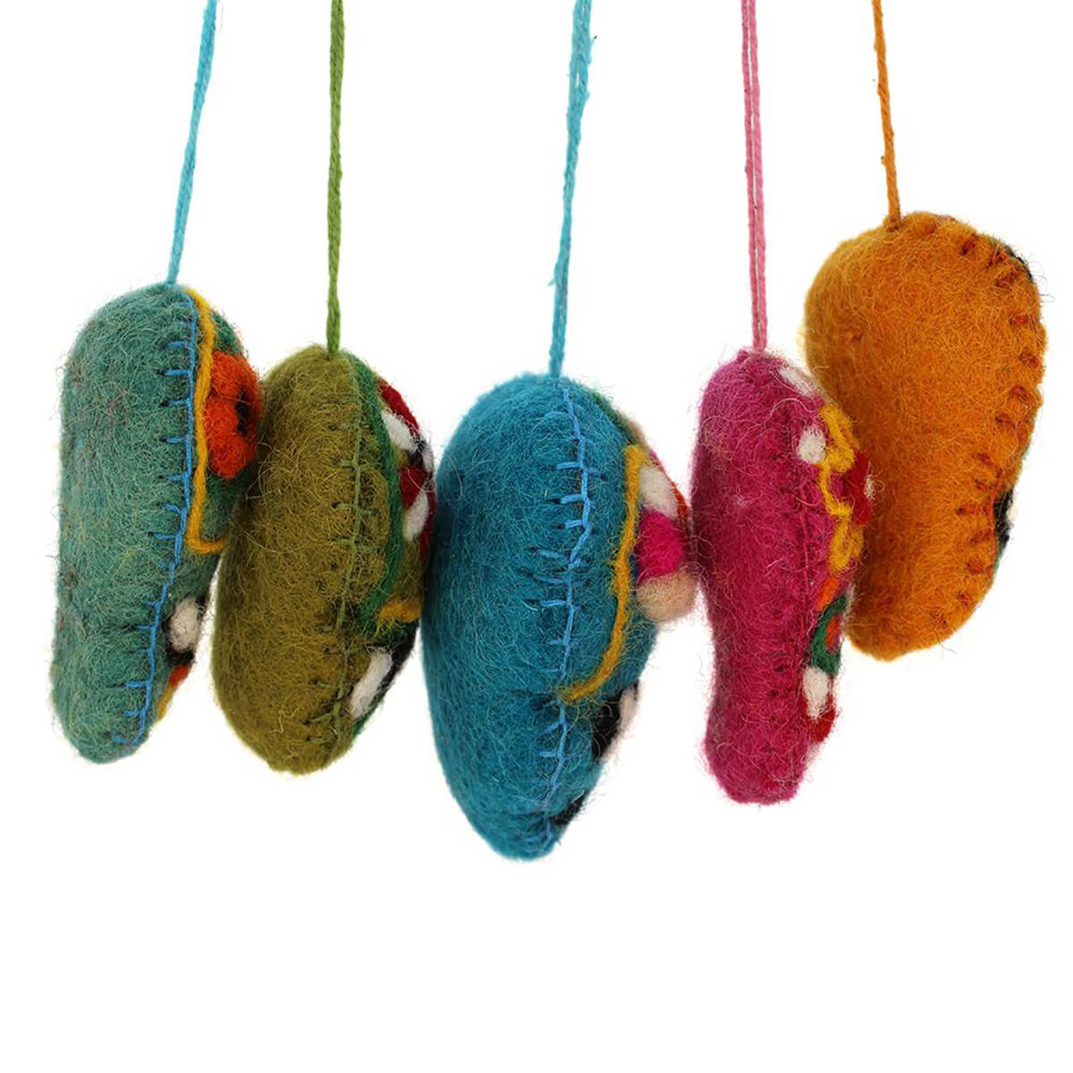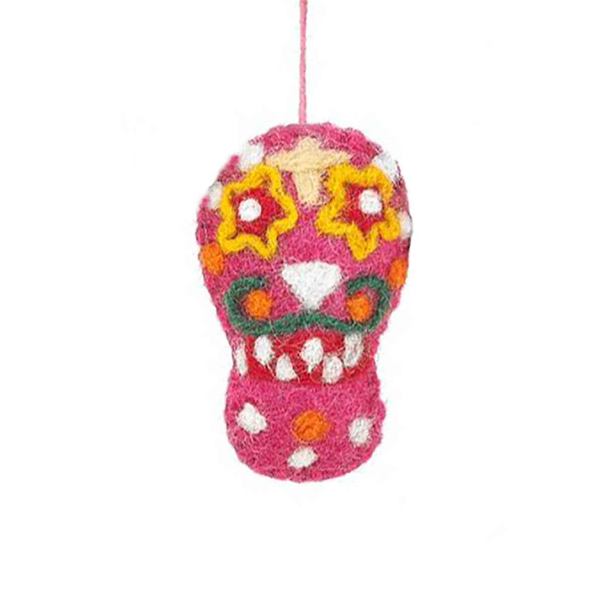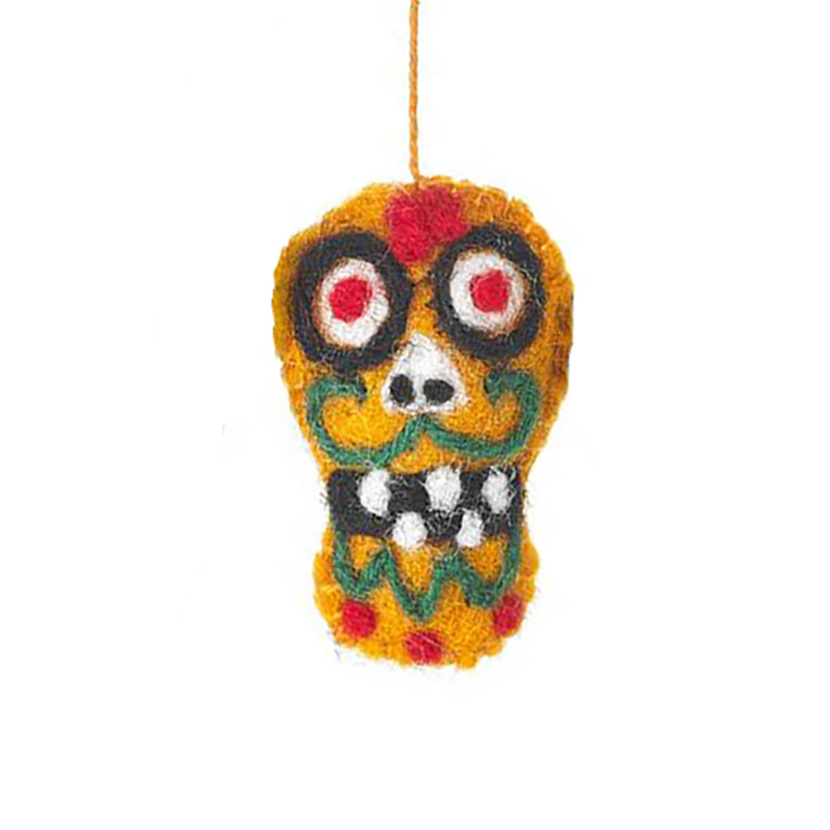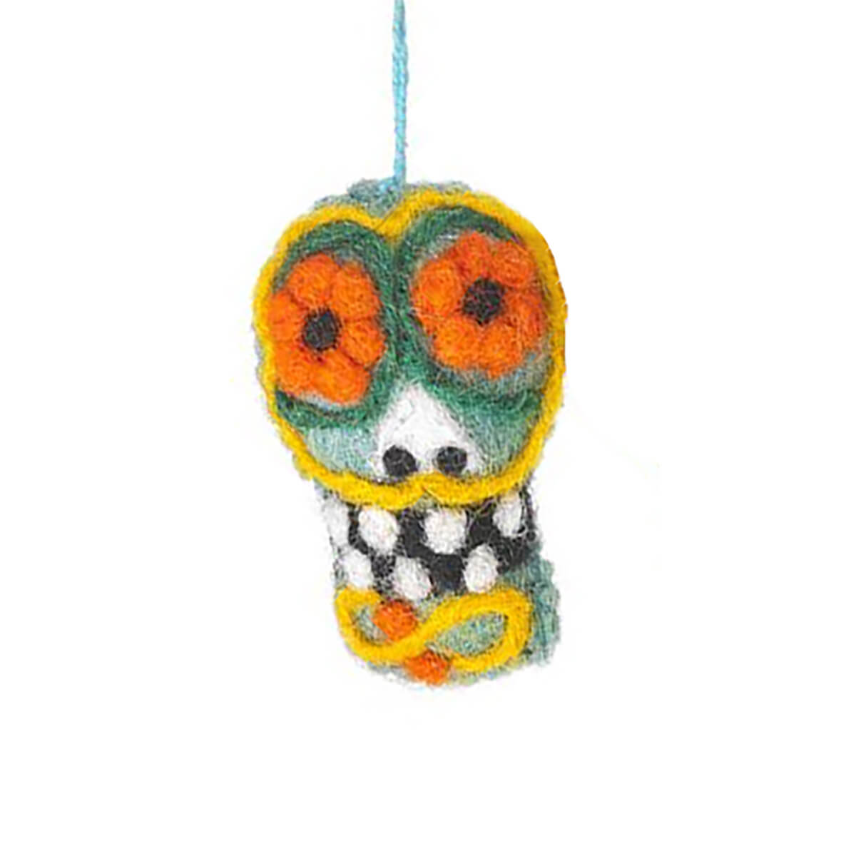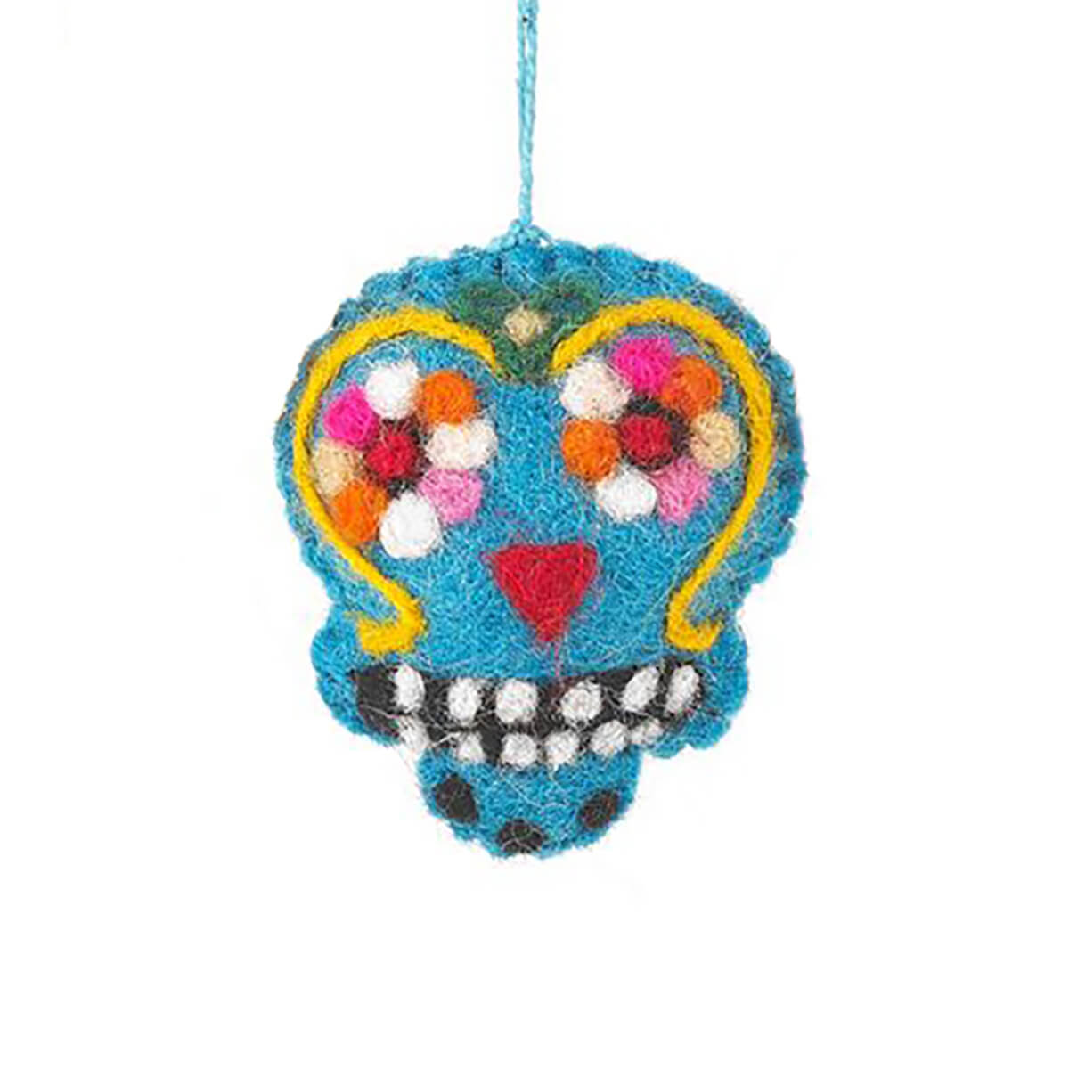 Sugar Skulls felted Halloween hanging decorations by Felt So Good. Hand needle felted Halloween decorations, featuring five different brightly coloured sugar skull decorations, inspired by Día de los Muertos (Day Of The Dead).