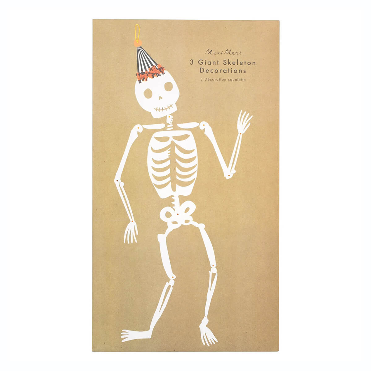 Vintage Giant Halloween Jointed Skeletons by Meri Meri. Trick or treat! These large smiling skeleton decorations, with fun hats on, look delighted to join in your Halloween celebrations. Hang them wherever you want a thrilling effect. Set of 3.