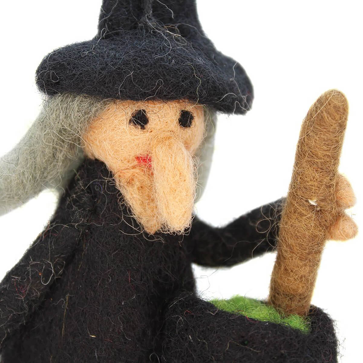 Wanda The Witch felted Halloween hanging decoration by Felt So Good. Hand needle felted Halloween decoration, featuring Wanda The Witch complete with bubbling cauldron.