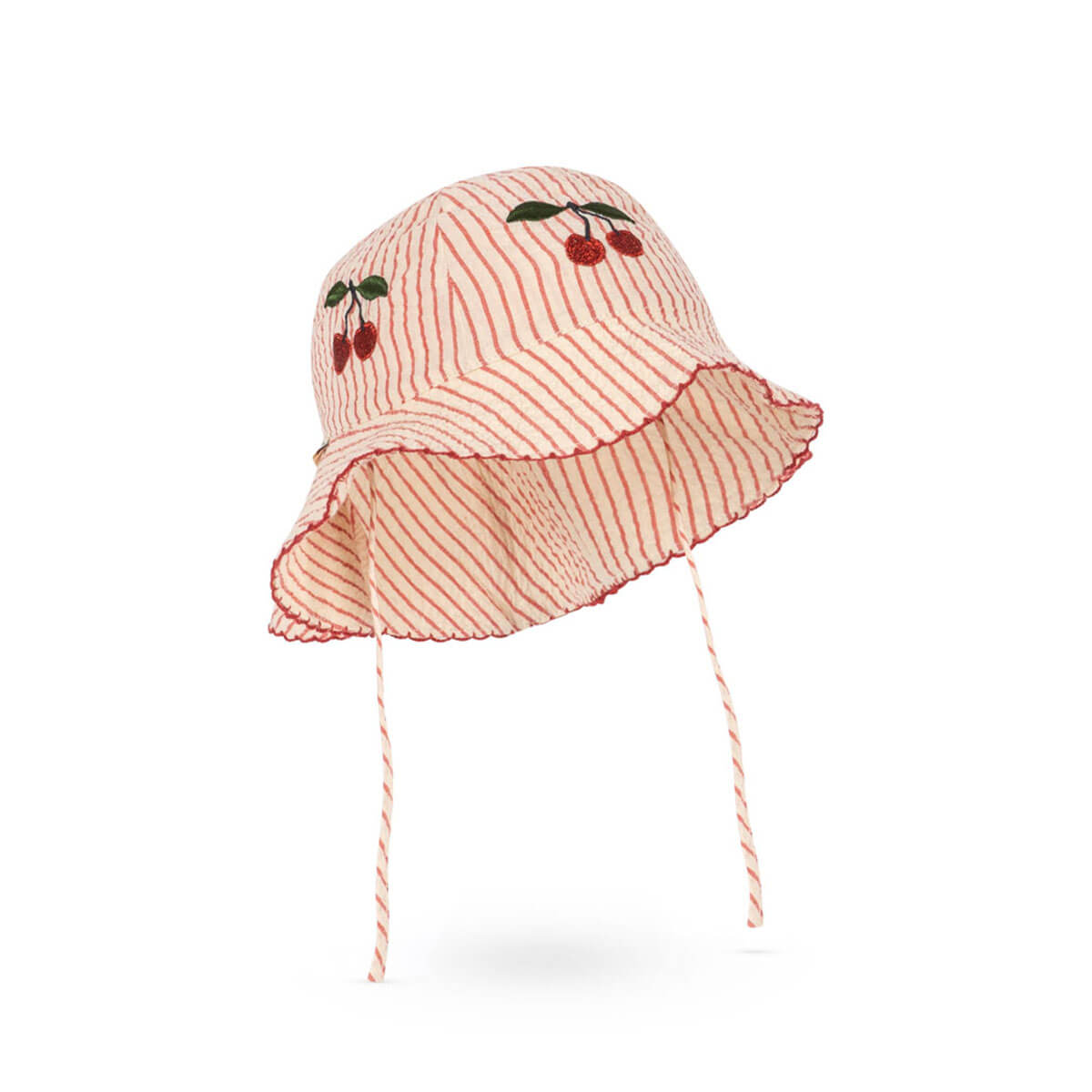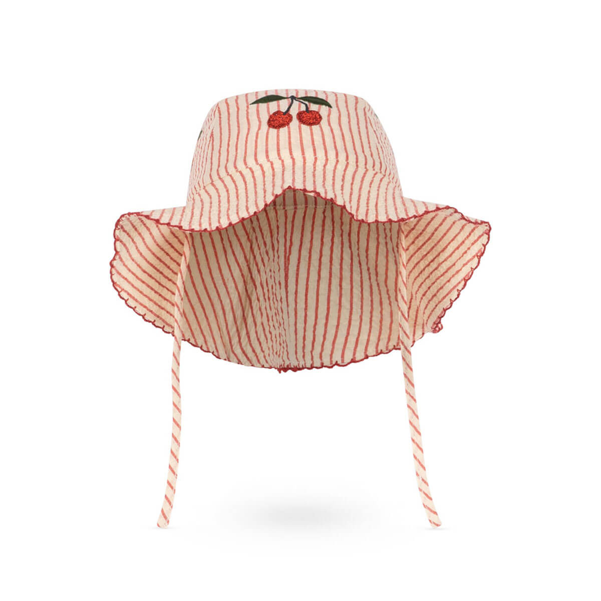 Ellie Sun Hat by Konges Sløjd. Soft sun hat in a textured seersucker cotton that feels light and breathable, and offers comfy shade on sunny days. Fastens with slim straps under the chin for a comfy fit.