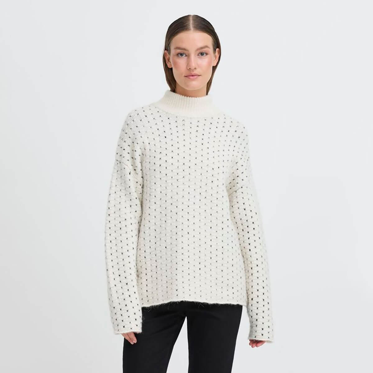 Kamara Sweater in Cloud Dancer Black Dot by ICHI