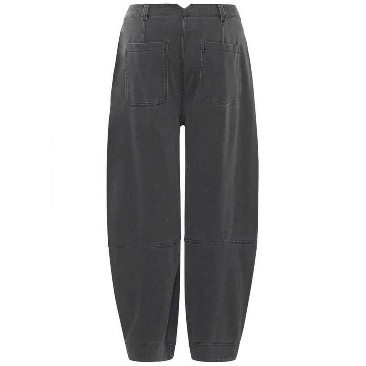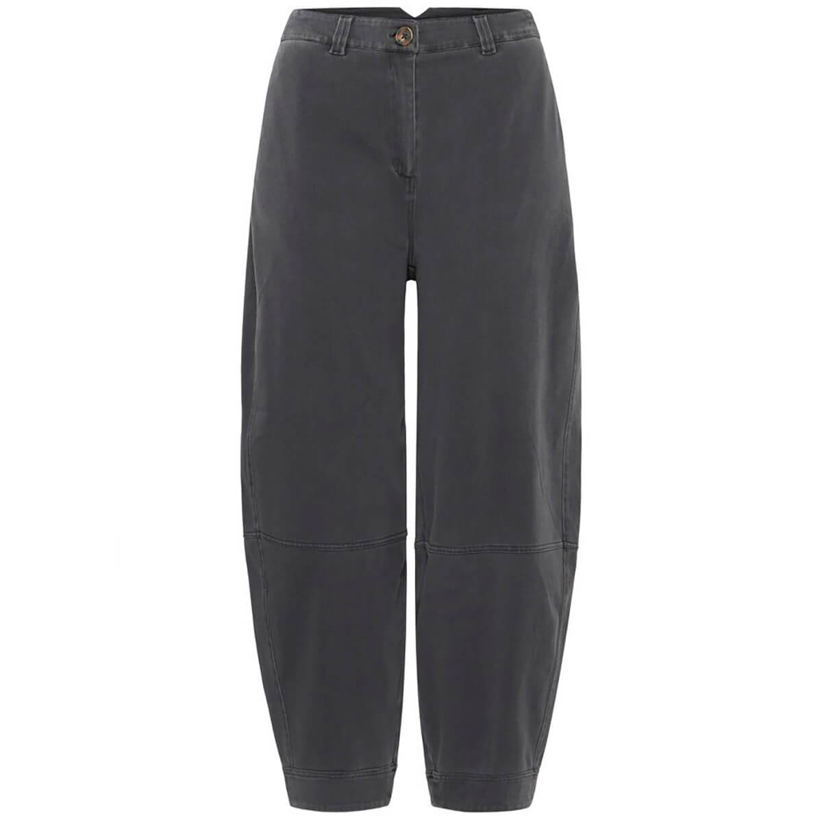 Kate Denim Pants by ICHI. These relaxed fit denim trousers offer a modern, comfortable silhouette with a high waist and ankle length. Featuring classic belt loops, side pockets, and knee seams for versatile everyday wear.