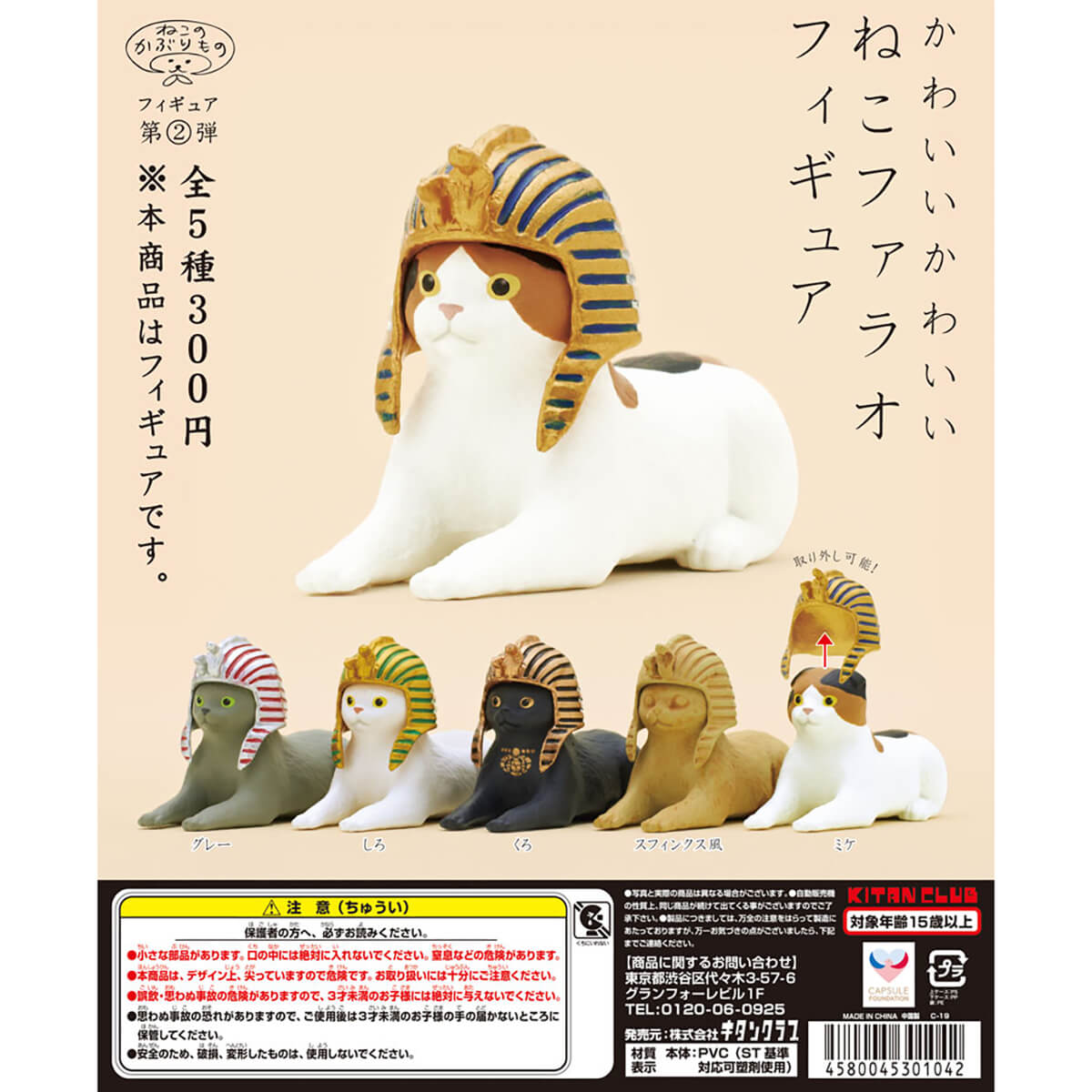 Neko no Kaburimono Cat Pharoahs Gachapon Capsule Collectible by Kitan Club. Highly collectible and authentic Japanese gachapon capsule containing one of five cat figures dressed as Egyptian Pharaohs.
