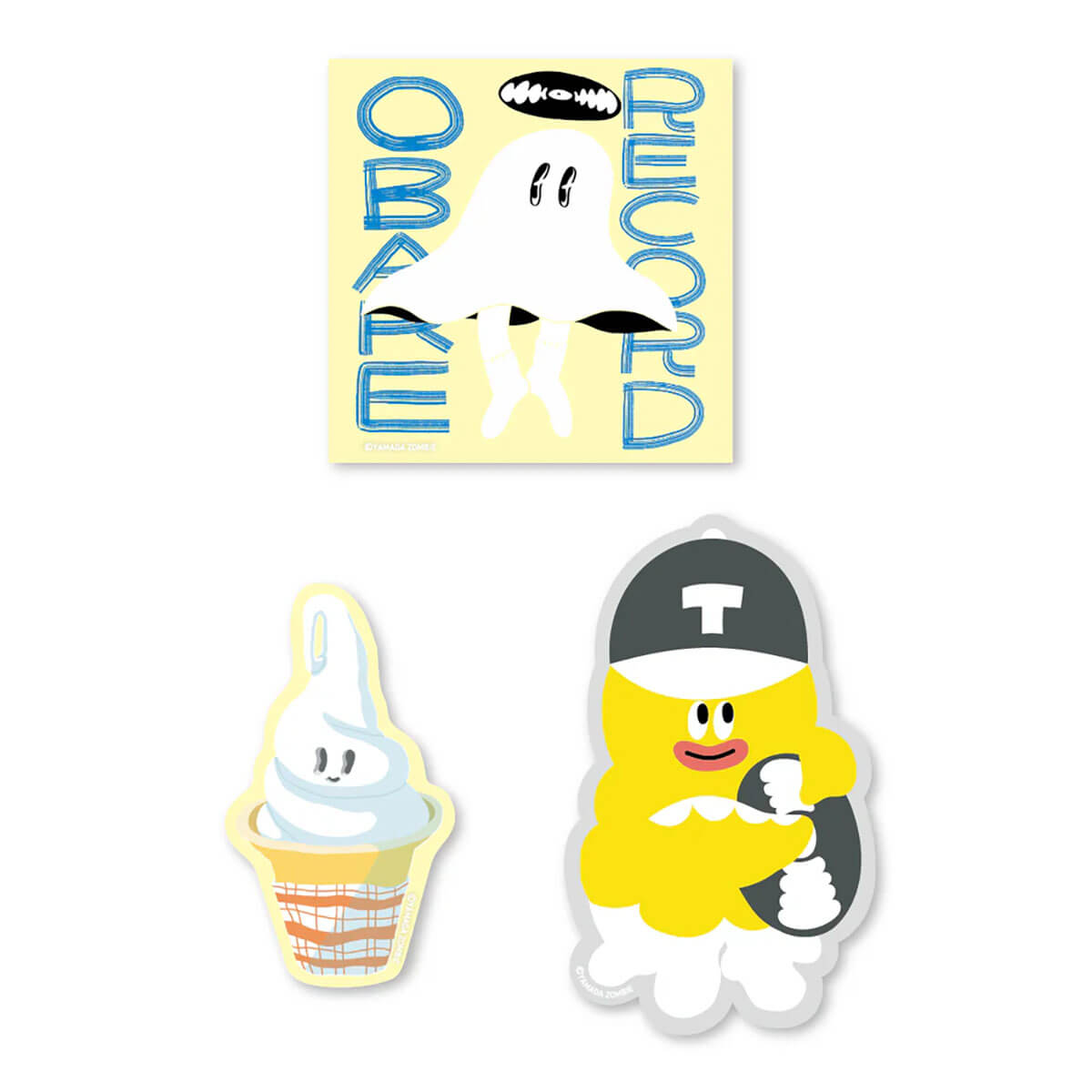 Sticker Set by KenElephant. Vinyl sticker set designed by artist Yamada Zombie. Yamada Zombie is an illustrator specilising in creating pop and humorous characters. They have worked on illustrations for magazines, corporate characters, CD and record jackets for numerous artists, and merchandise and are very skilled in handwritten pop lettering.