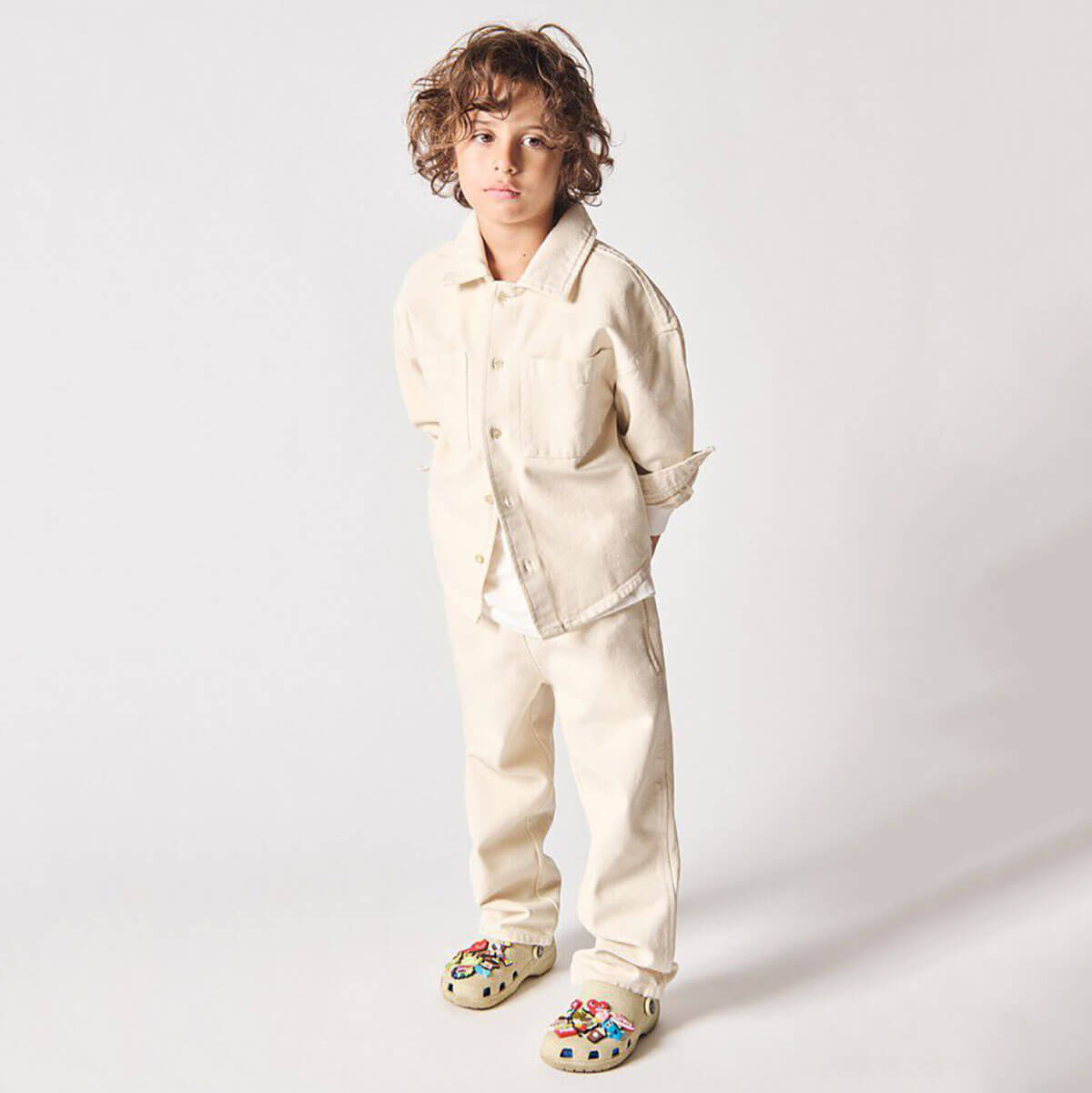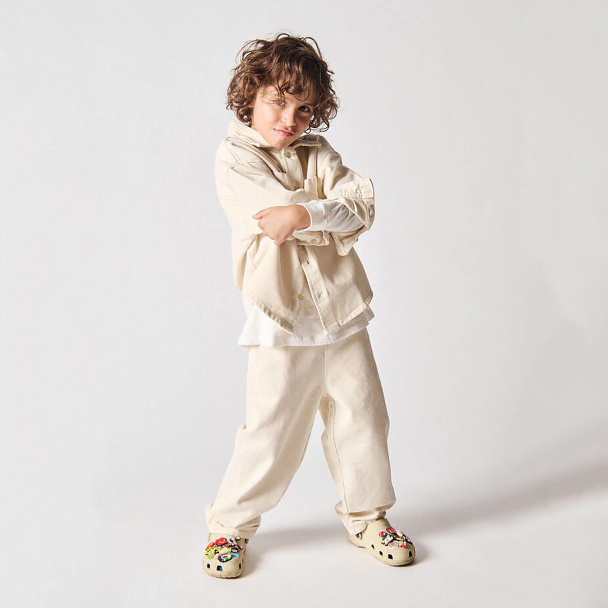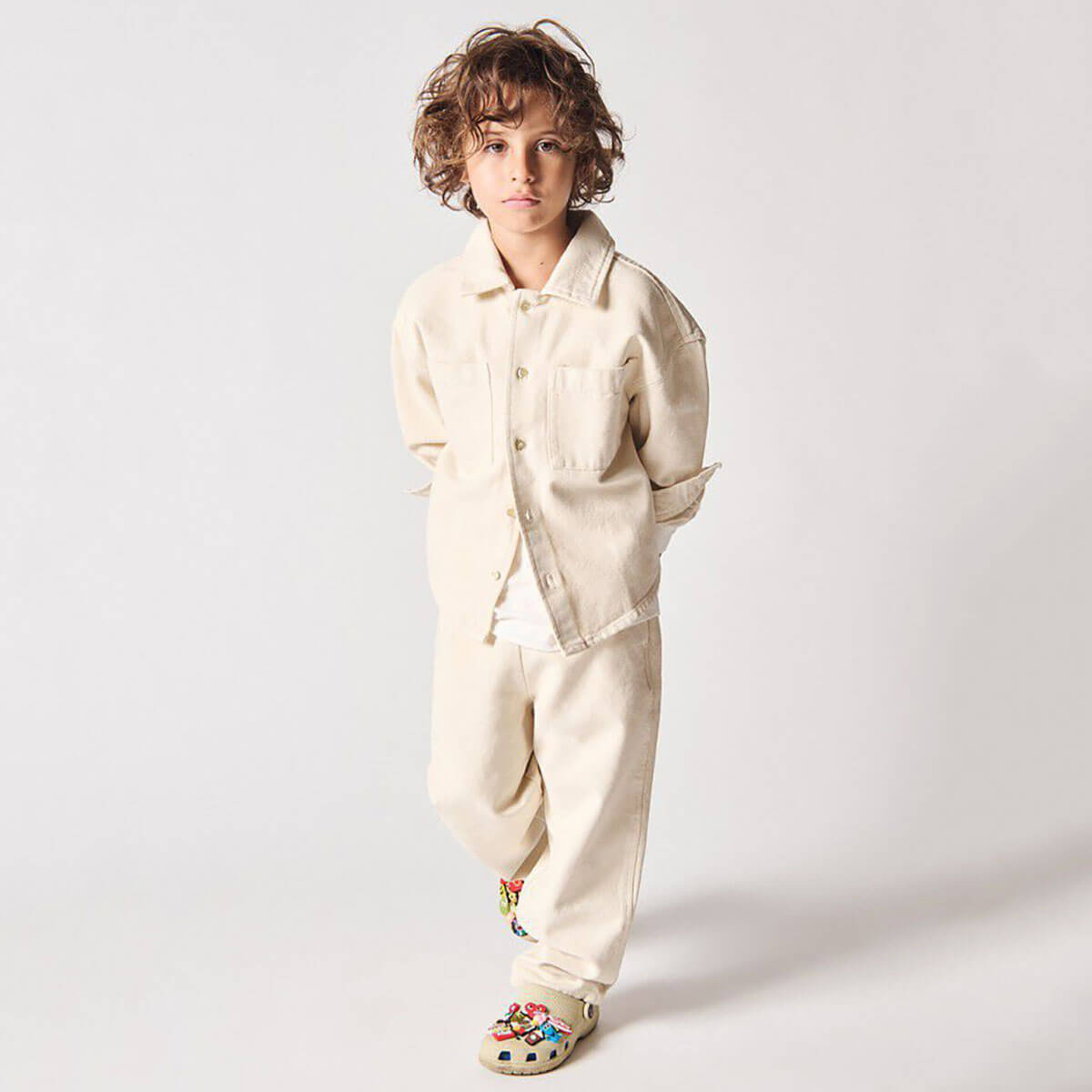 Lycaz Kid's Joggers by American Vintage. The Lycaz children's sweatpants are made from an ecru woven fabric that is both sturdy and structured. Easy to care for, the fabric is also lightweight, making it comfortable to wear all day long.