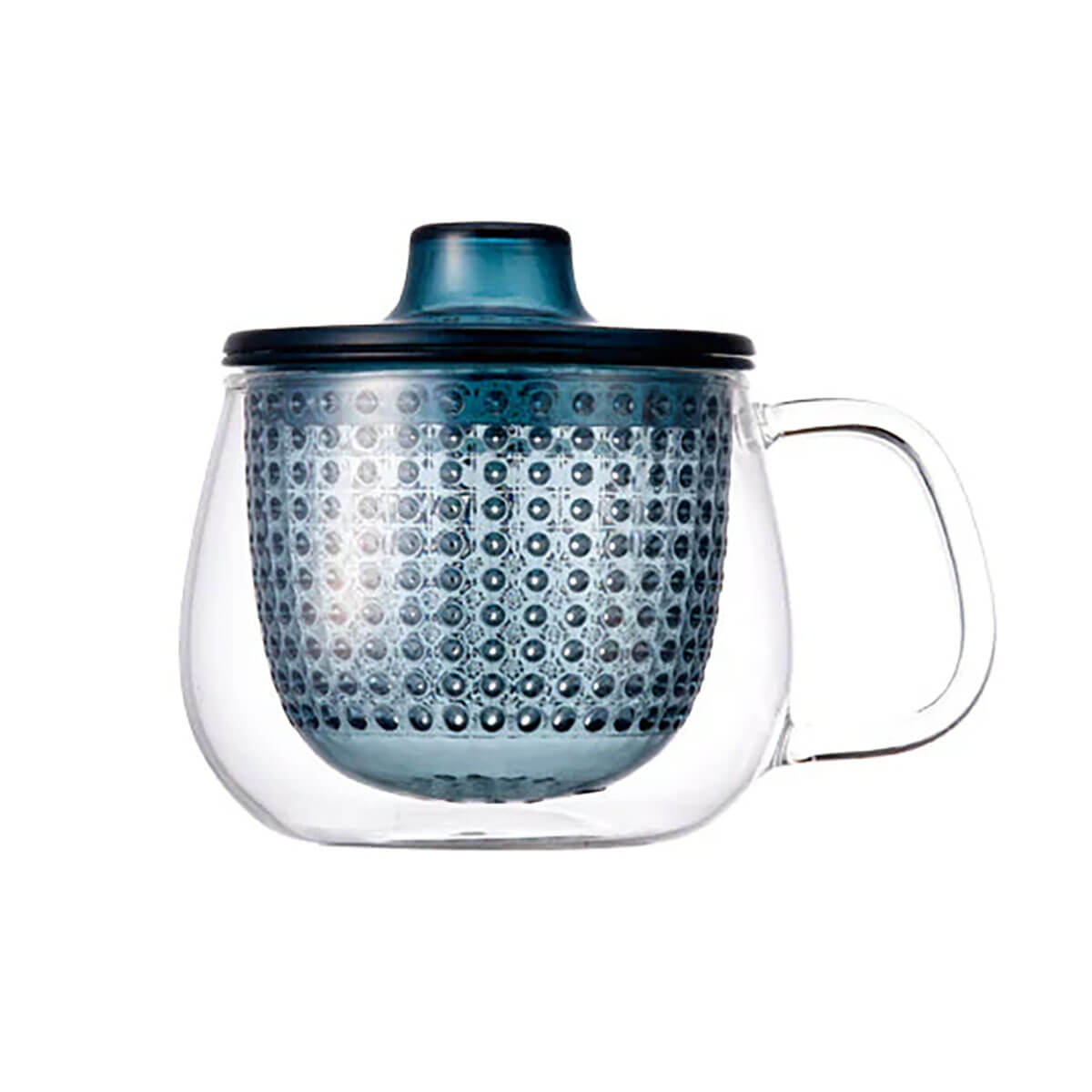 Unitea Unimug by Kinto. Unitea integrates harmoniously into any scene. This glass mug showcases the beauty of the tea inside, letting you observe tea leaves as they bloom. While made of glass, the large arched design of the handle lets you grip firmly and comfortably.