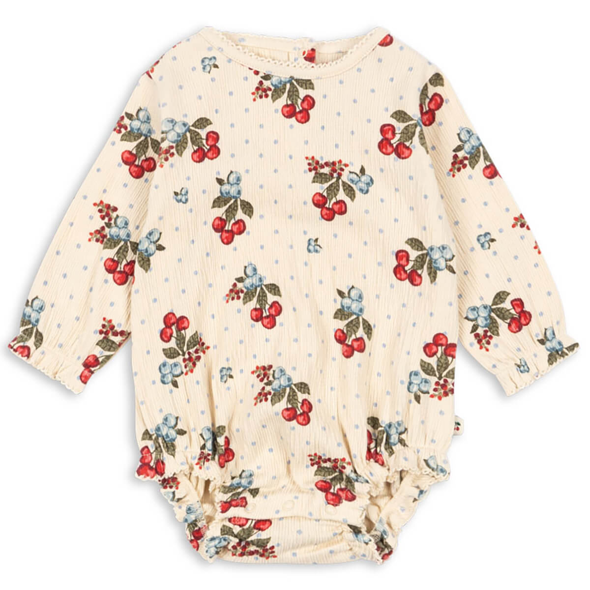 Chleo Romper by Konges Sløjd. Long-sleeved bodysuit in a soft and stretchy organic cotton fabric. Designed with snap buttons at the crotch for easy dressing.