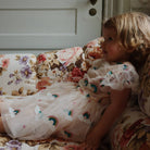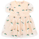 Tullie Dress by Konges Sløjd. The Tullie dress has puff sleeves, a ruched top part with sheer tulle, and a voluminous skirt.