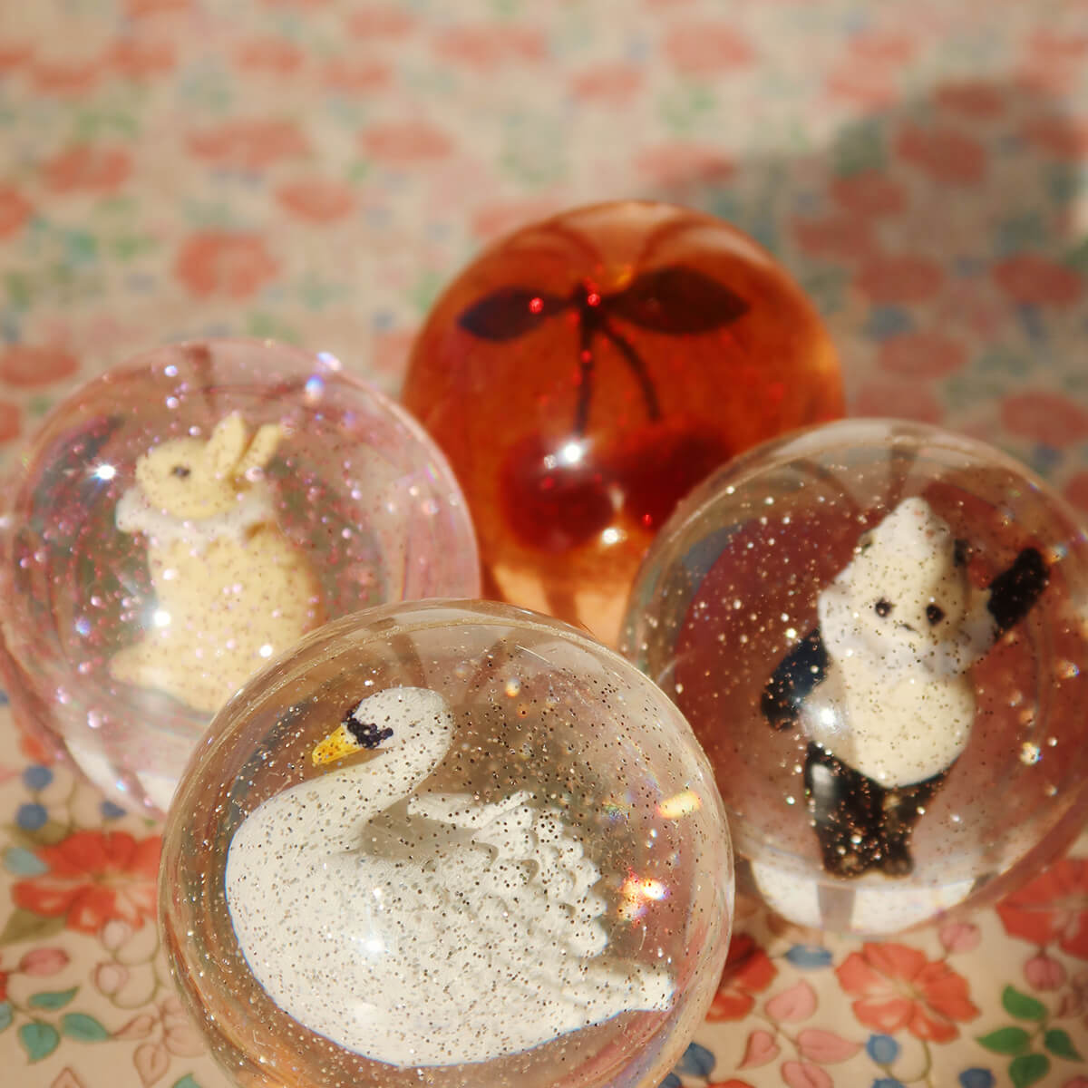 Bouncing Ball Set by Konges Slojd. Bounce me off the wall. These transparent bouncing balls with 3D Konges Sløjd signature figures and glitter inside are made for hours of fun and play.
