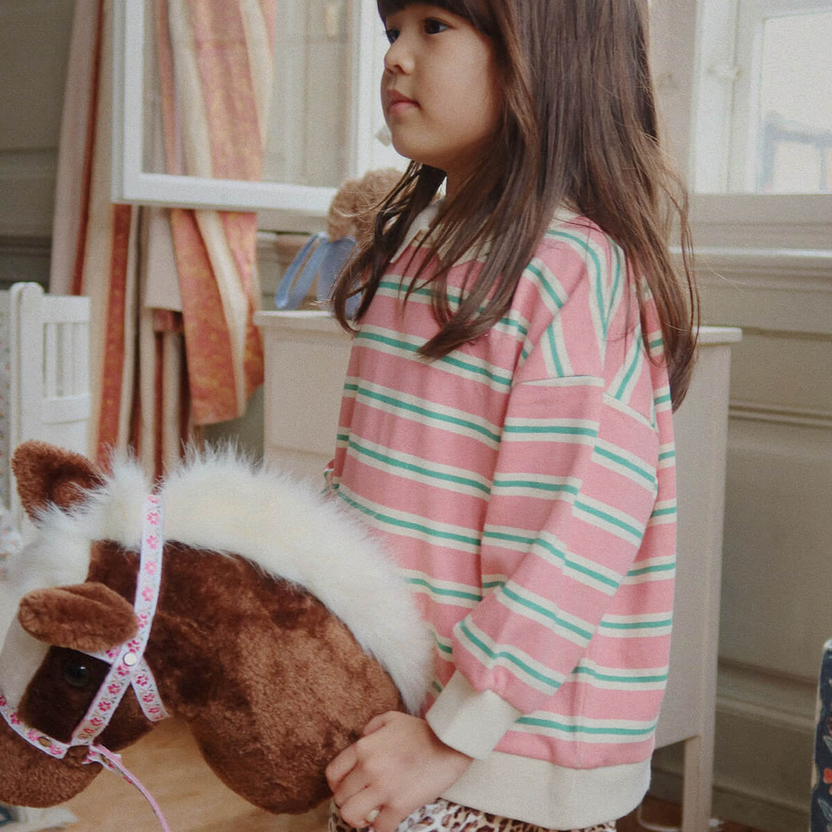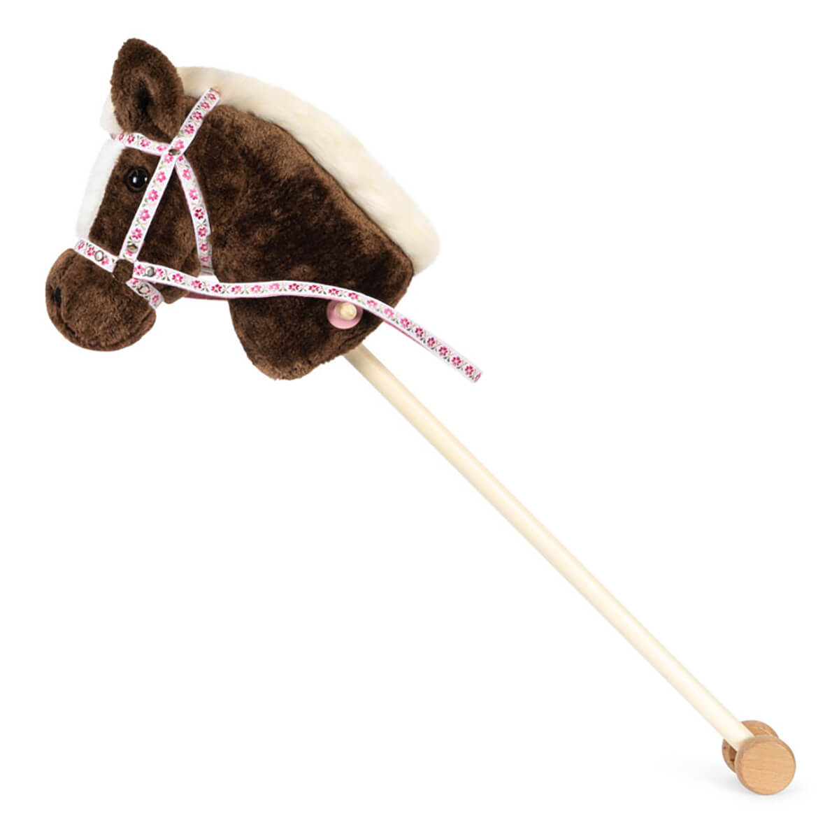Stormy Horse by Konges Sløjd. Sweet hobbyhorse made for hours of fun and play. The horse head is fastened on a wooden stick with wheels at the end that make it easy to steer.