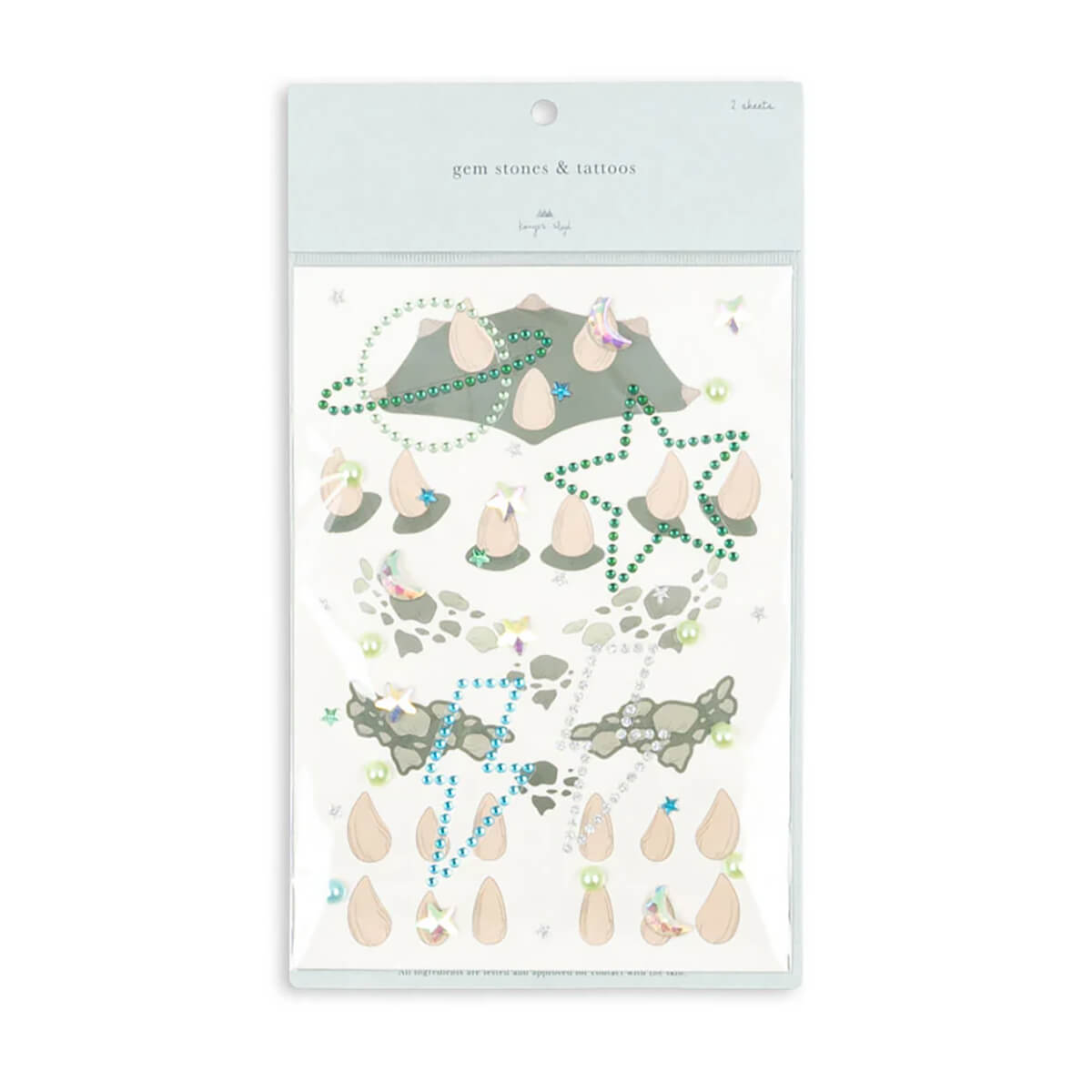 Gem Stones and tattoos by Konges Sløjd. One sheet of tattoos and one sheet of small gem stones for creative play.