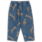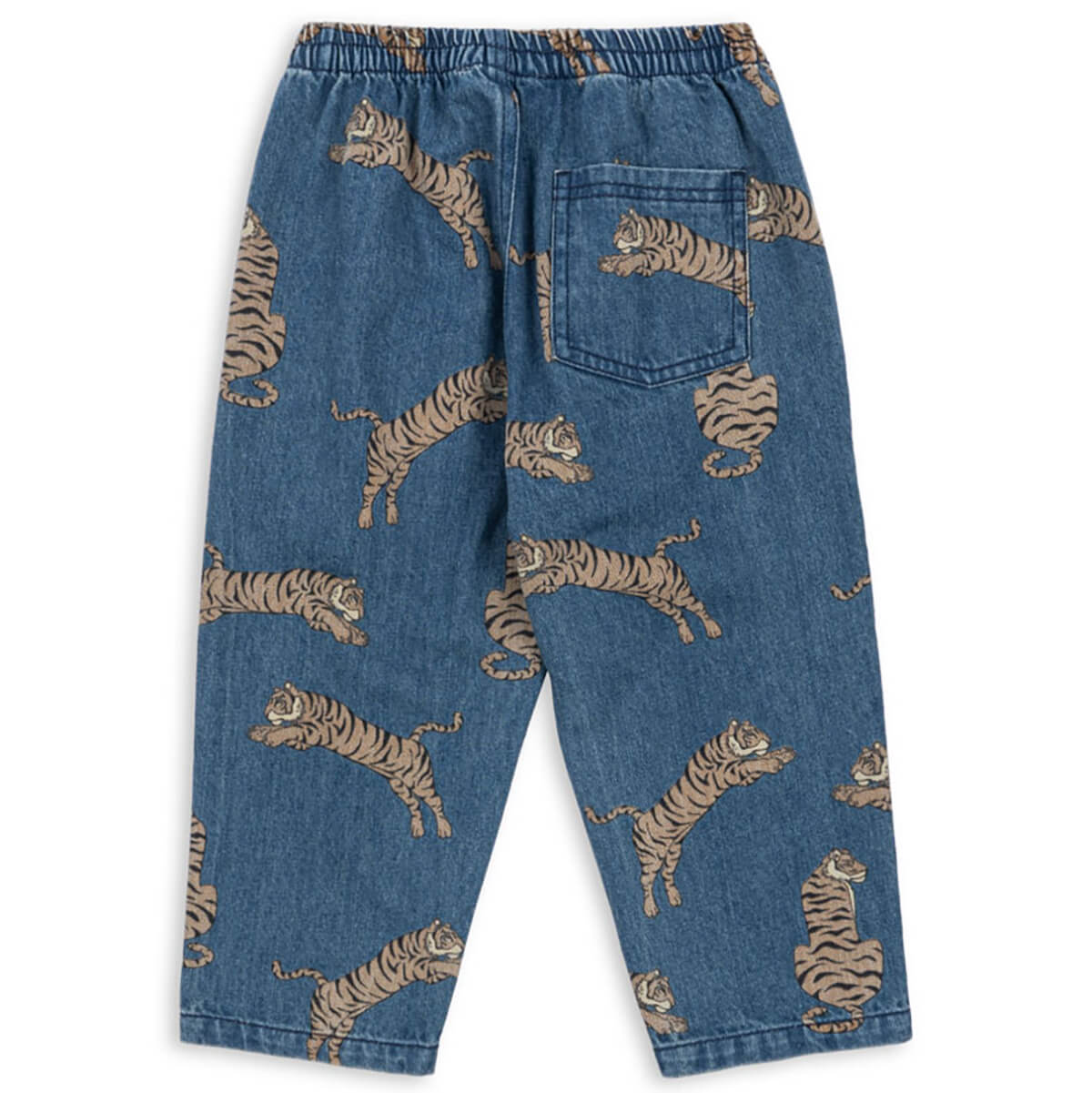 Magot Pants by Konges Slojd. Soft denim trousers with an elasticated waist and all over tiger print.