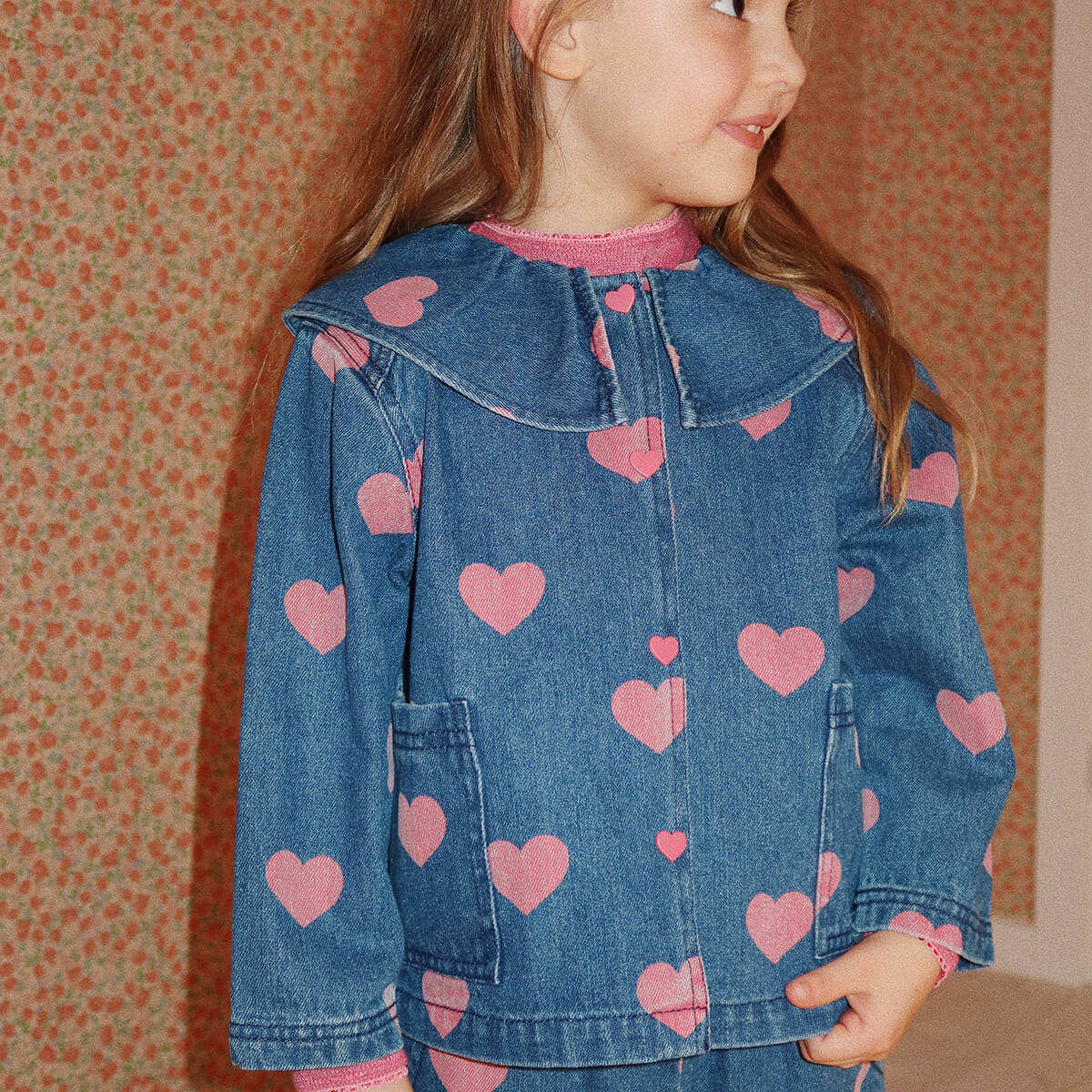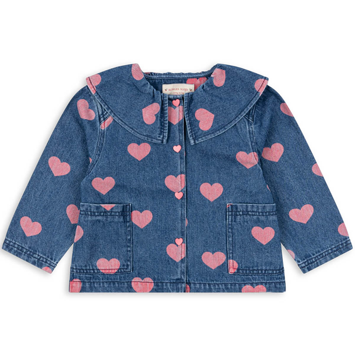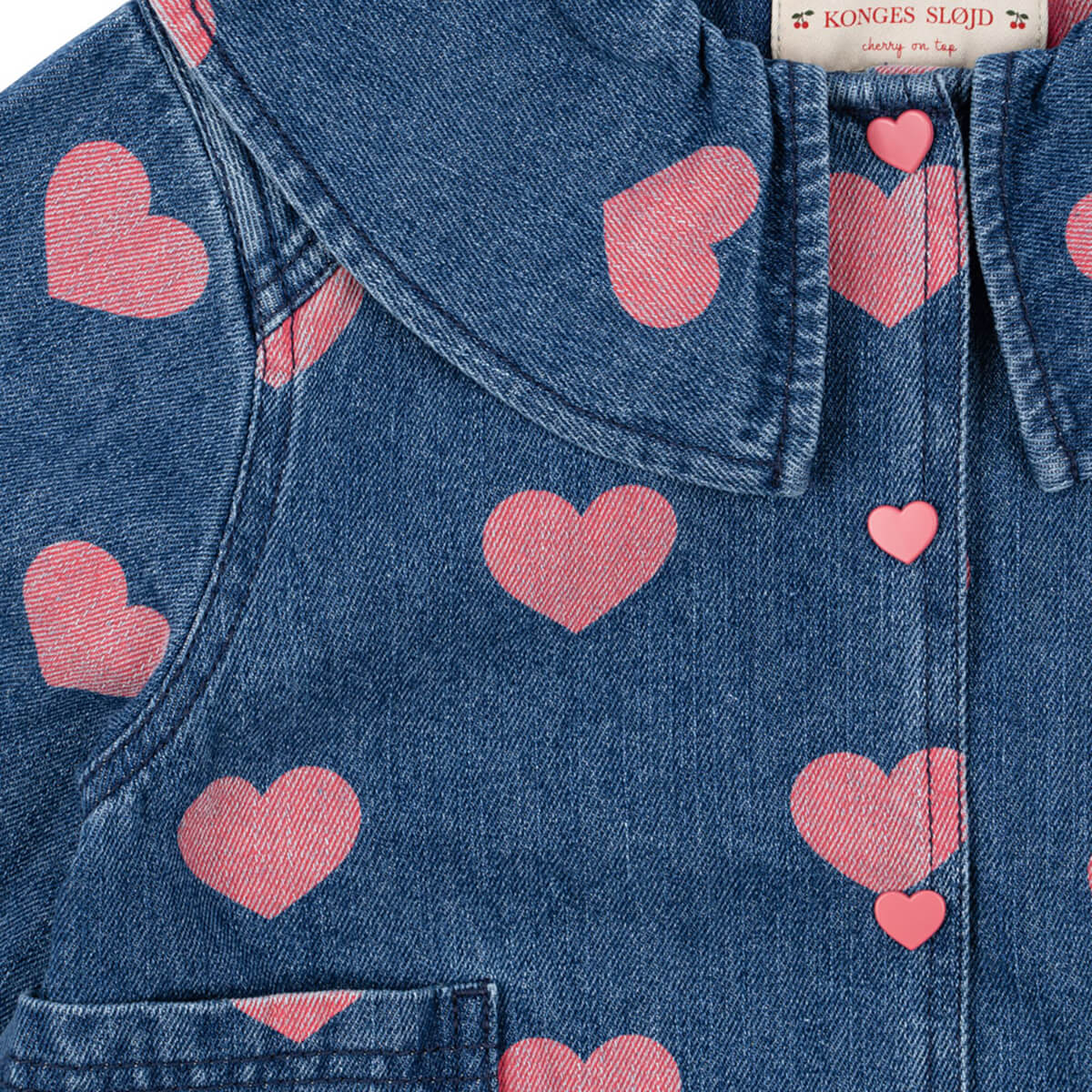 Magot Denim Shirt by Konges Slojd. The classic printed denim shirt with collar and front pockets in all over heart print.