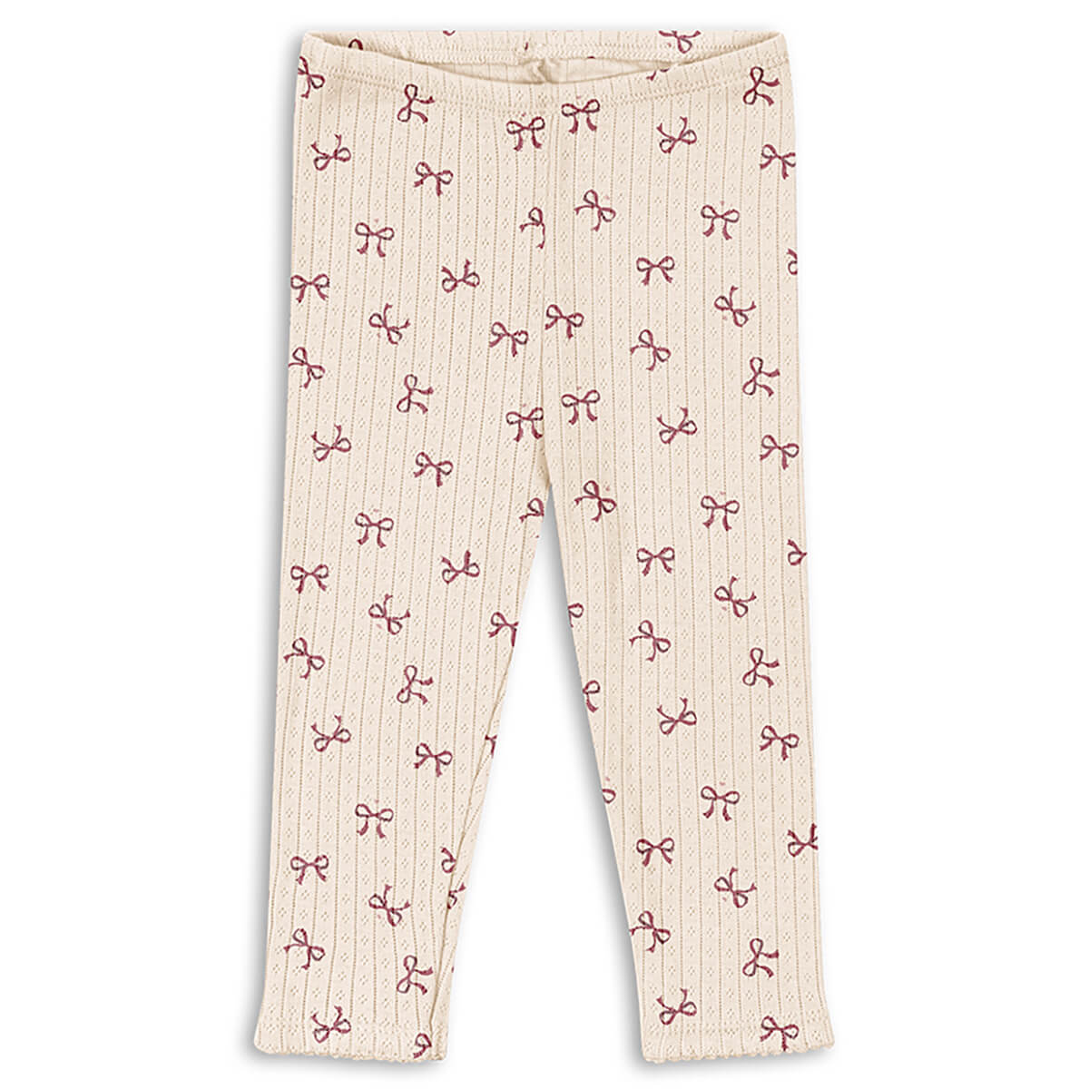 Minnie Legging Pants by Konges Sløjd. Soft cotton leggings with decorative pointelle. These essentials are made to be worn both day and night as a comfortable layer close to the skin, and is designed with a decorative all-over pointelle pattern and a comfy elastic waistline.