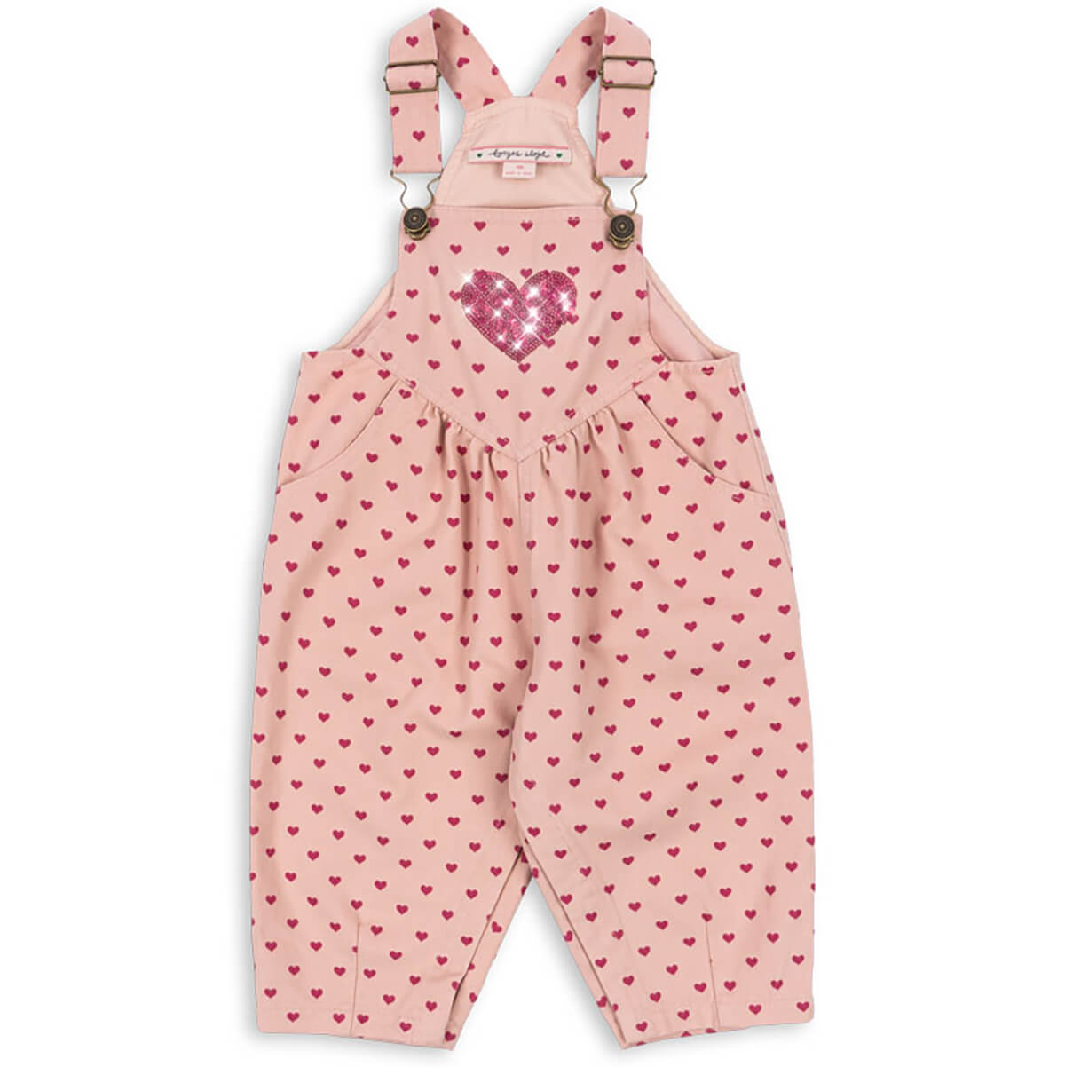 Nola Overalls by Konges Sløjd. Classic dungarees with signature logo buttons and an sequin detail.