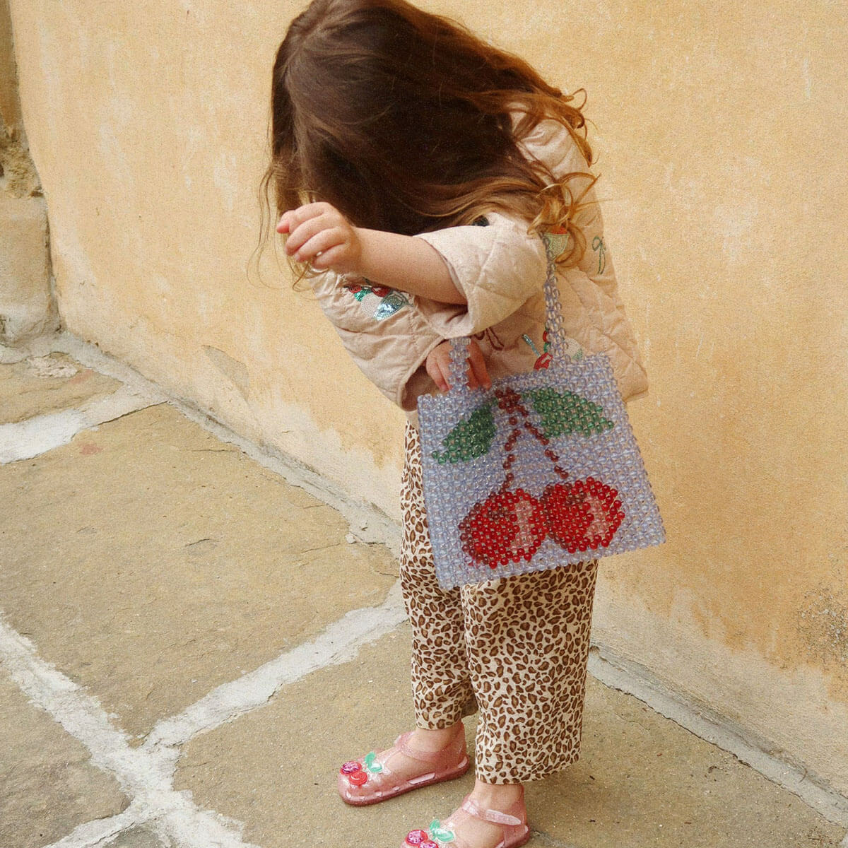 Perla Bag by Konges Sløjd. Cute little shoulder bag with a slim strap and the signature cherry made with beads. The perfect finishing touch to little summer outfits.