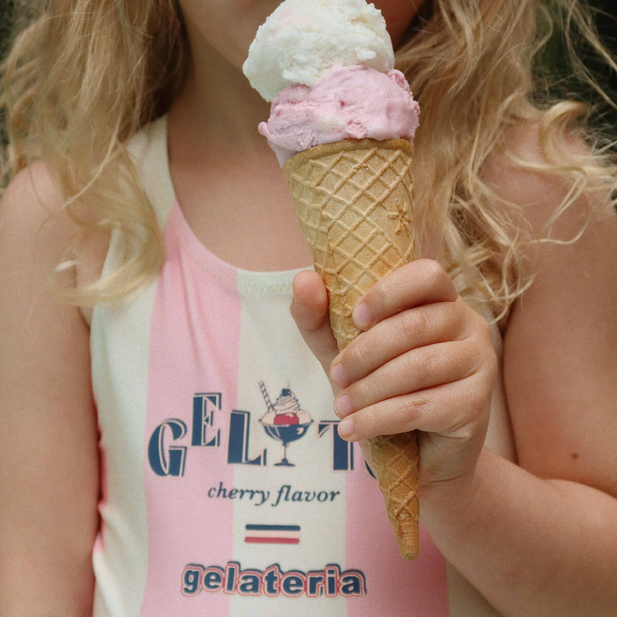 Pomia Swimsuit by Konges Sløjd. Soft swimsuit crafted in a smooth and quick-drying fabric that is comfortable and stretchy. The Pomia swimsuit is made in all the colors of your favorite ice cream and is sure to become a summer go-to for beach and pool days.