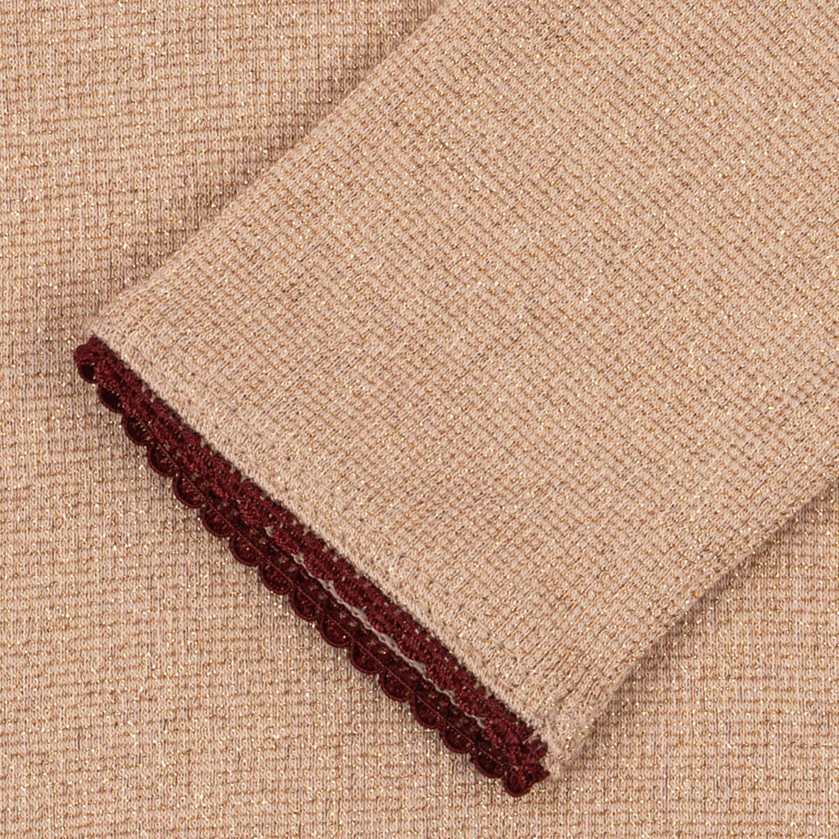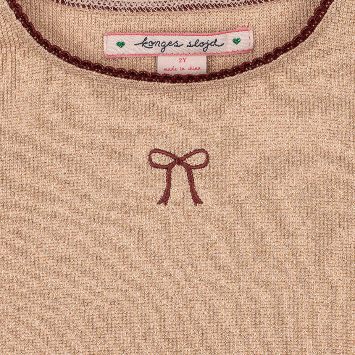 Roli Long Sleeve Top by Konges Sløjd. Soft and stretchy rib blouse. A perfect everyday piece woven with a lurex thread for a little bit of shine. Designed with decorative picot edges around the neck line.