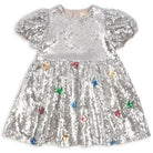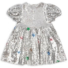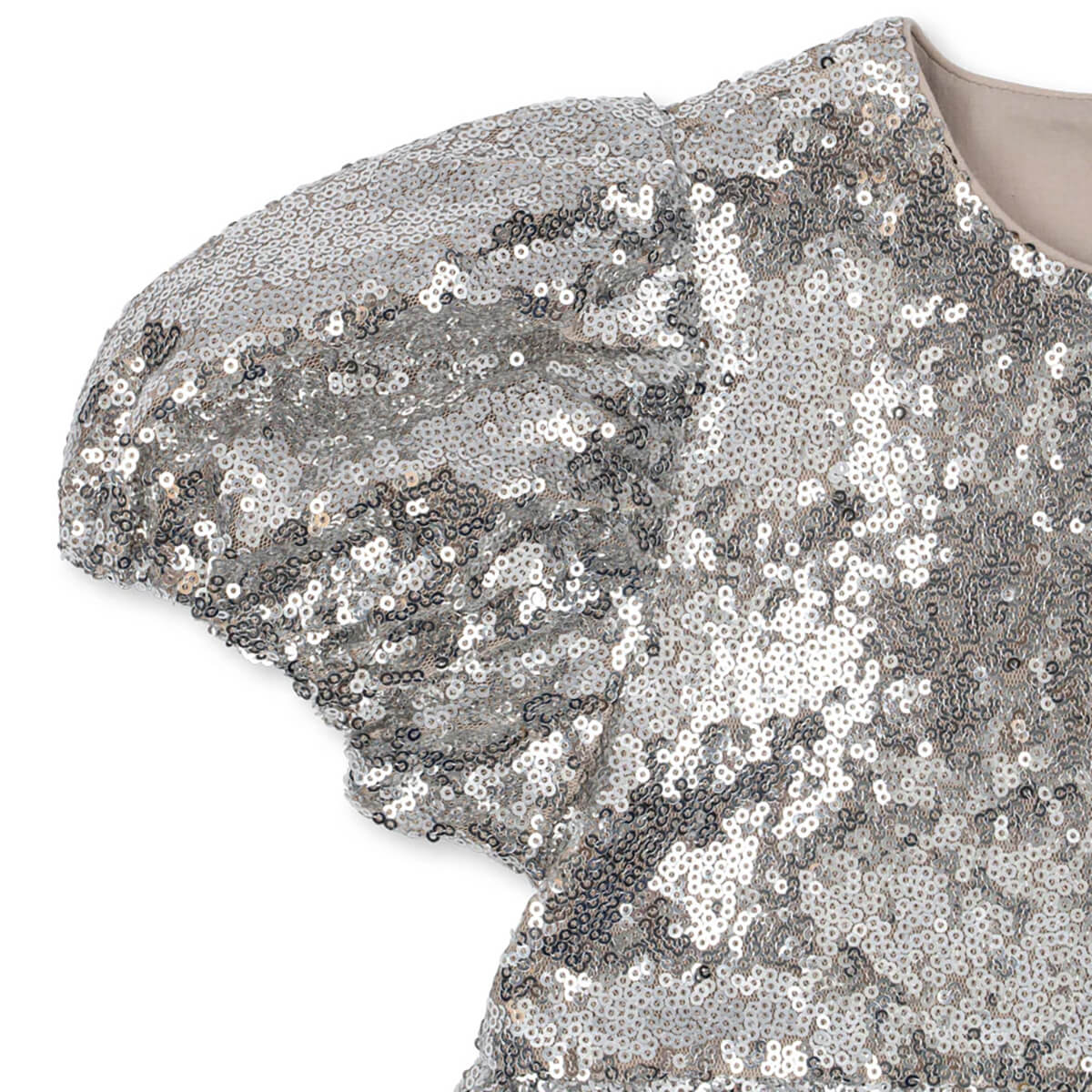 Starla Stardust Dress by Konges Sløjd. The Starla dress is a true showstopper: dressed in sparkly sequins, and features an accentuated waistline, round neck, and flared skirt.