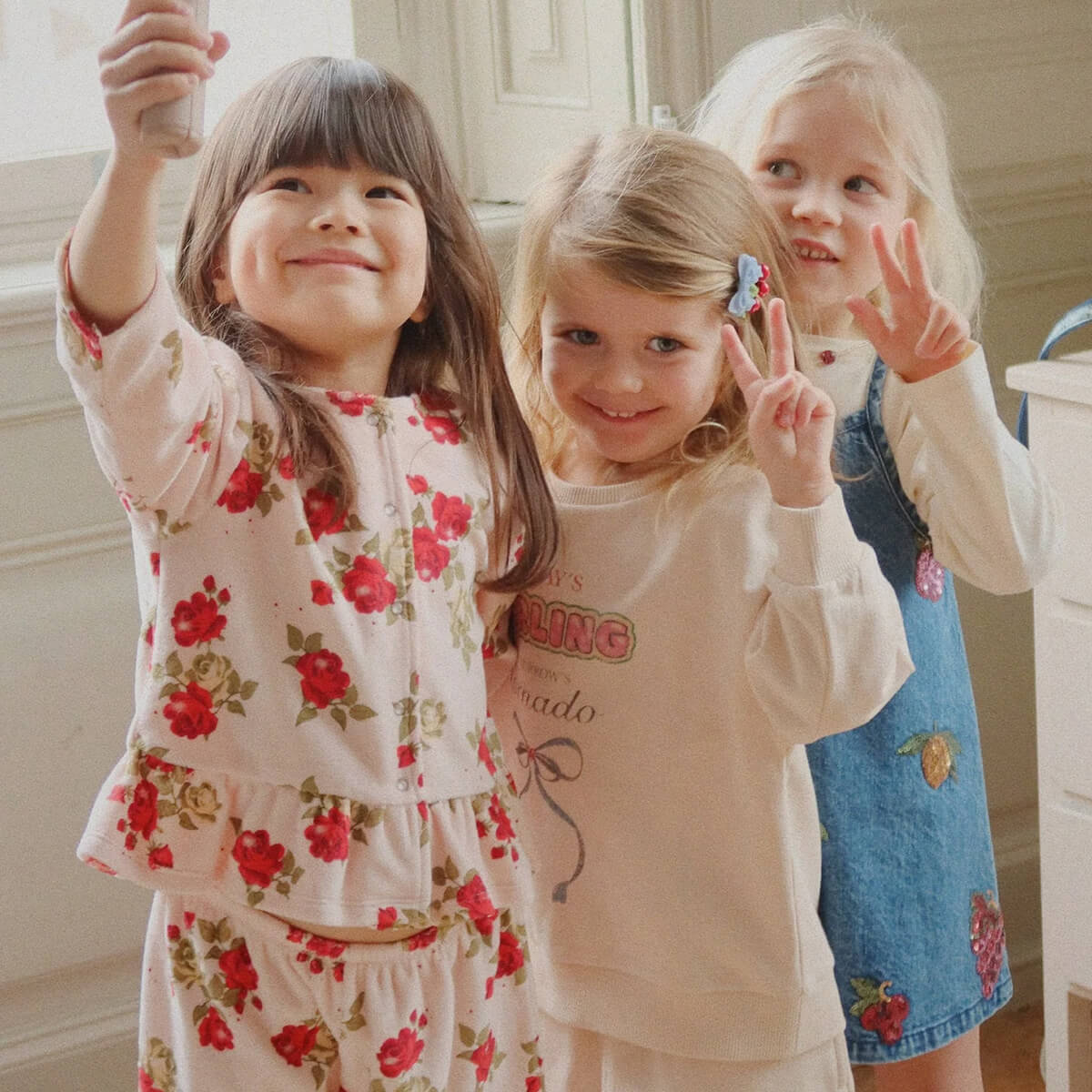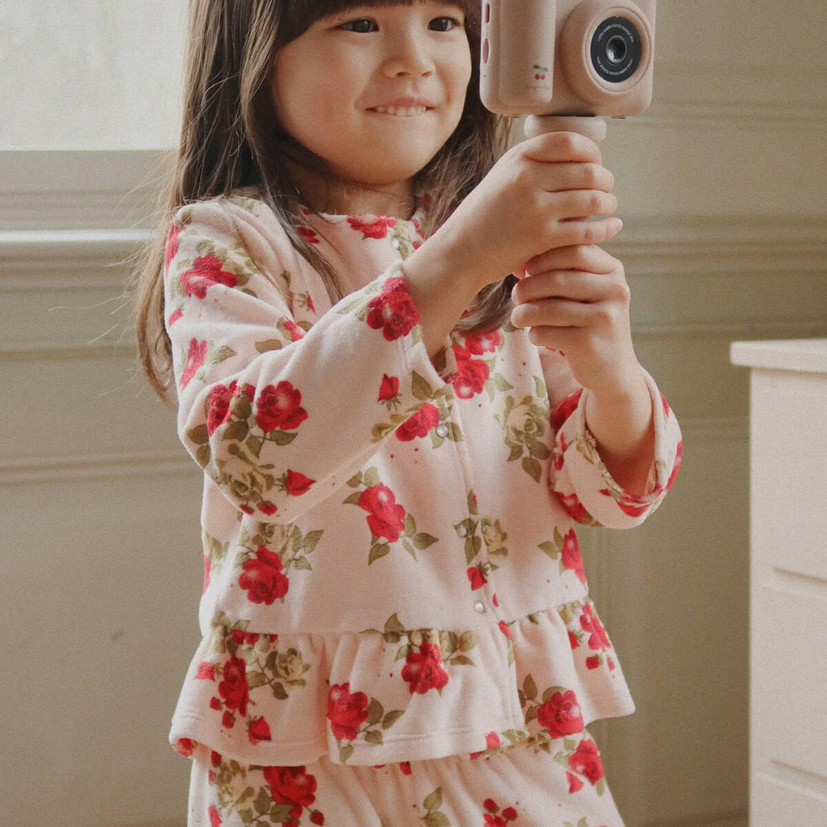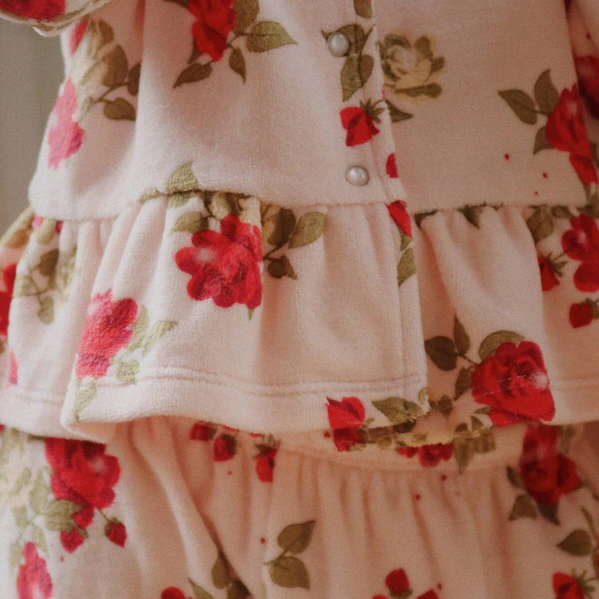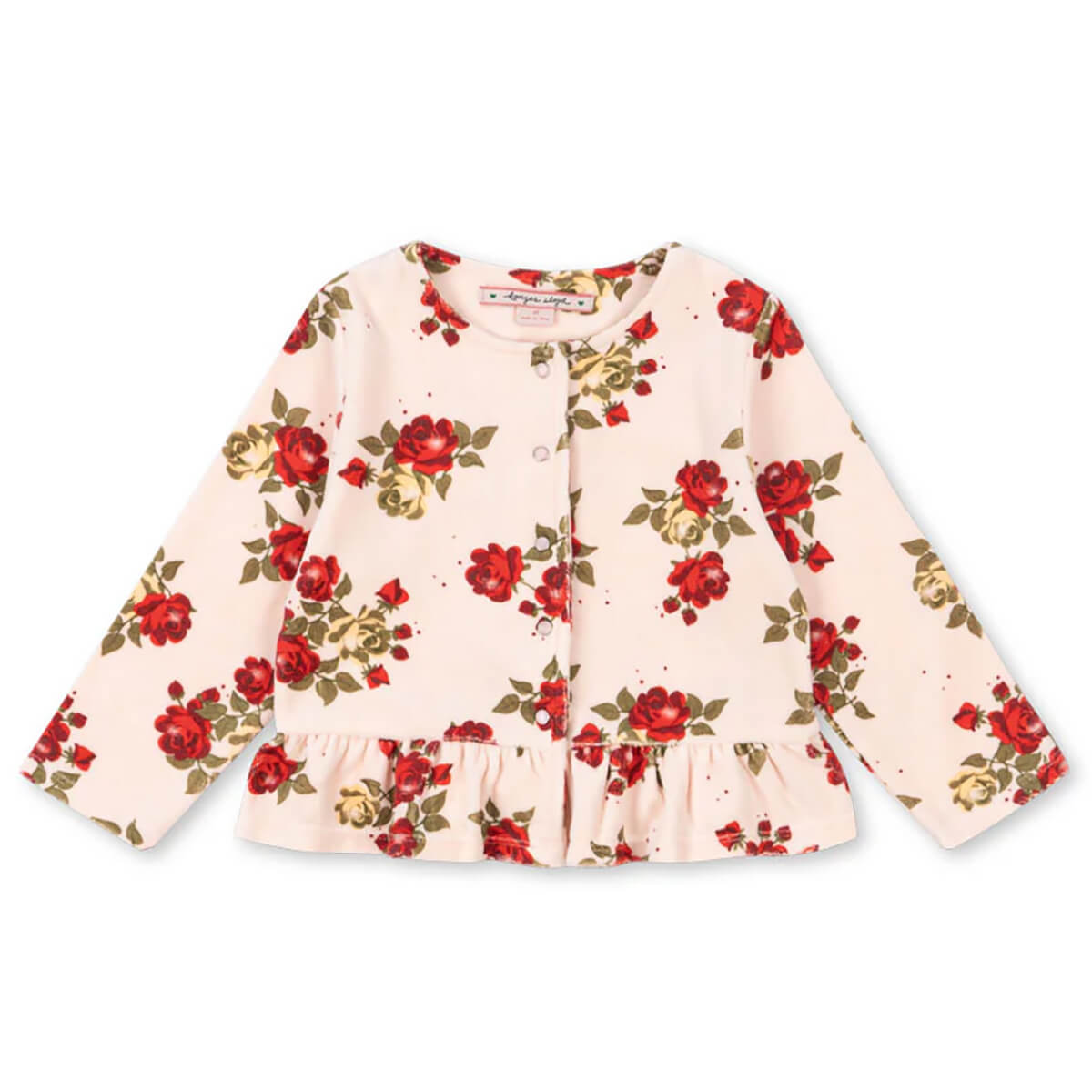 Velula Cardigan by Konges Sløjd. Soft velvet cardigan with a peplum waist. Closes with push buttons in front.