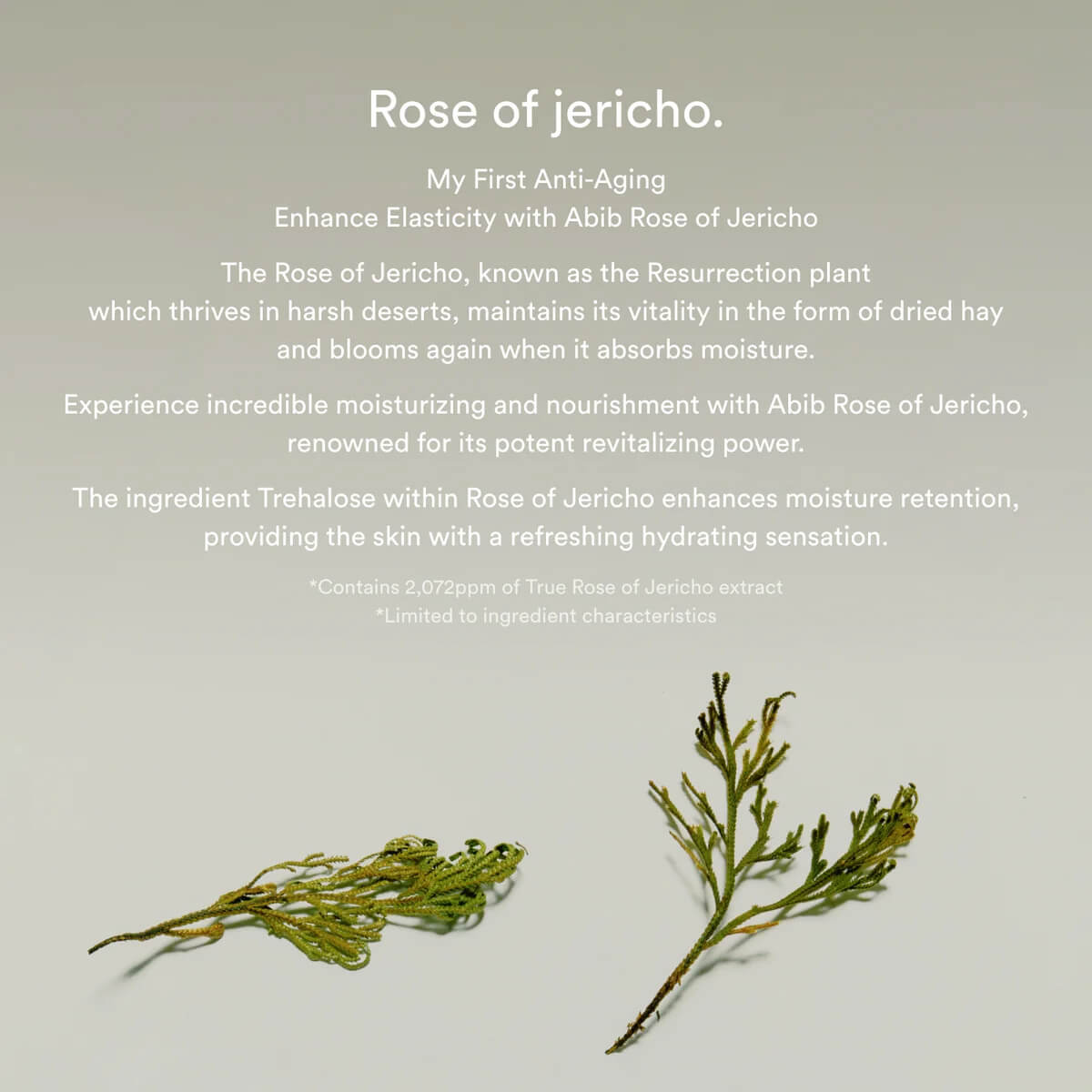 Jericho Rose Extract – a desert plant known for its exceptional ability to retain moisture; revitalizes and hydrates dry, fatigued skin.