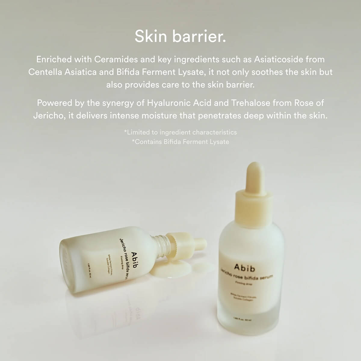 Jericho Rose Bifida Serum Firming Drop by Abib. A concentrated anti-aging serum formulated to strengthen the skin barrier, enhance elasticity, and restore a youthful glow. Powered by Jericho rose extract and Bifida ferment lysate, it revitalizes tired and stressed skin while improving firmness and resilience. The silky, fast-absorbing texture delivers deep hydration and nourishment without stickiness, leaving the skin smooth, supple, and radiant.