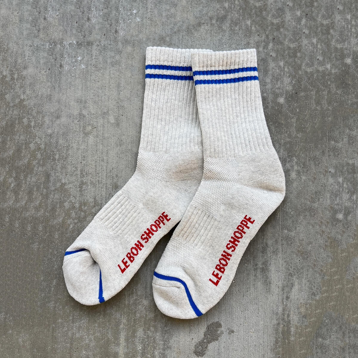 Boyfriend socks by Le Bon Shoppe. Introducing the Stripe Boyfriend Socks, the epitome of sporty charm and playful style. These delightful socks are a fusion of comfort, functionality, and an irresistible dose of cuteness. Designed to make a statement, they'll add a vibrant touch to any workout ensemble or casual attire.