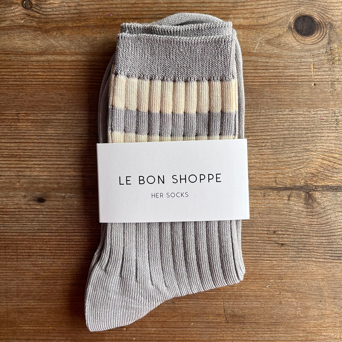 Her Varsity Adult Socks in Stone / White by Le Bon Shoppe