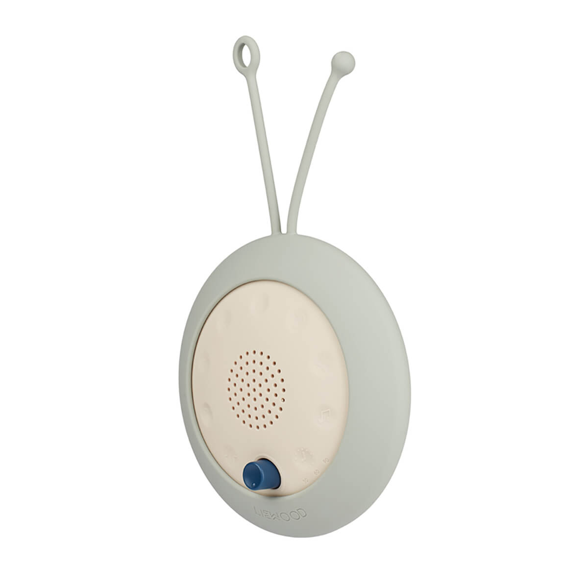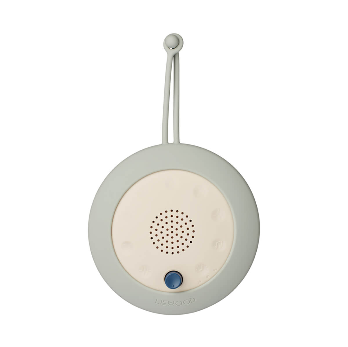 Jordi Sound Machine by Liewood. Portable sound machine with soothing sounds like pink noise, bird songs and breaking waves. Lightweight and easy to transport, easy to attach anywhere with the silicone strap. Standard USB-C charger included.