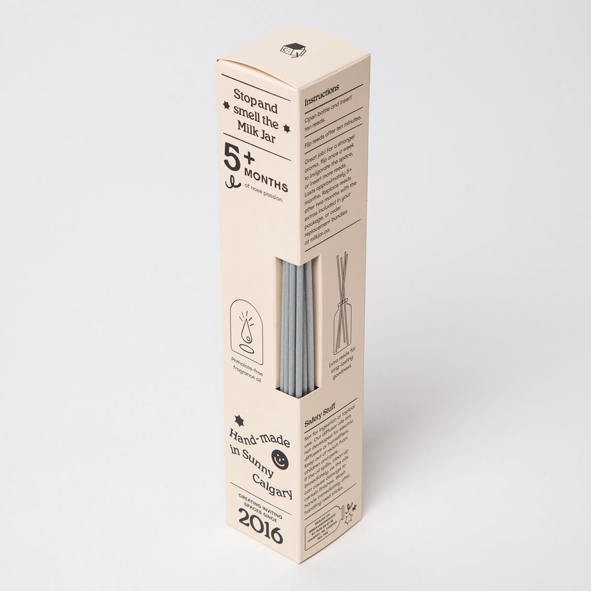 Each diffuser is 4oz (twice as big as our old ones) for 5+ months of nose passion. Hand-poured in sunny Calgary and scented with high quality, phthalate free fragrance oils. Includes 20 fibre reeds. Vegan and cruelty-free. Flip the reed sticks every 1-2 weeks to keep the fragrance fresh in your space. $1 from every reed diffuser sold supports the creation of inclusive and inviting spaces around the world.