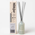 Reed sticks polyester cotton fibre. Glass jar.