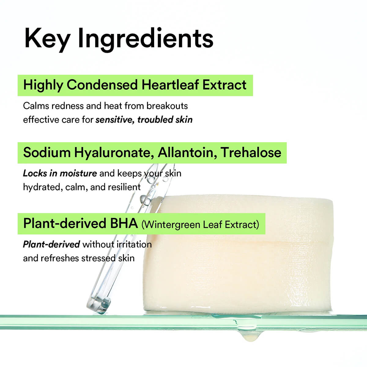 Heartleaf (Houttuynia Cordata) Extract 40,000 ppm – soothes irritation, reduces redness, and provides antibacterial protection for acne-prone skin.