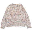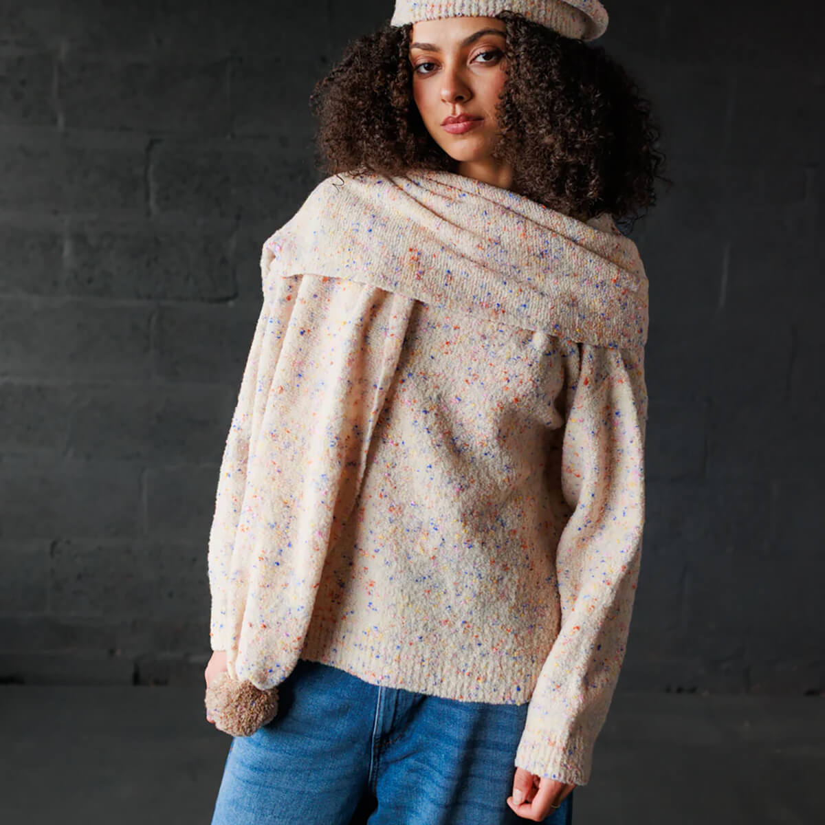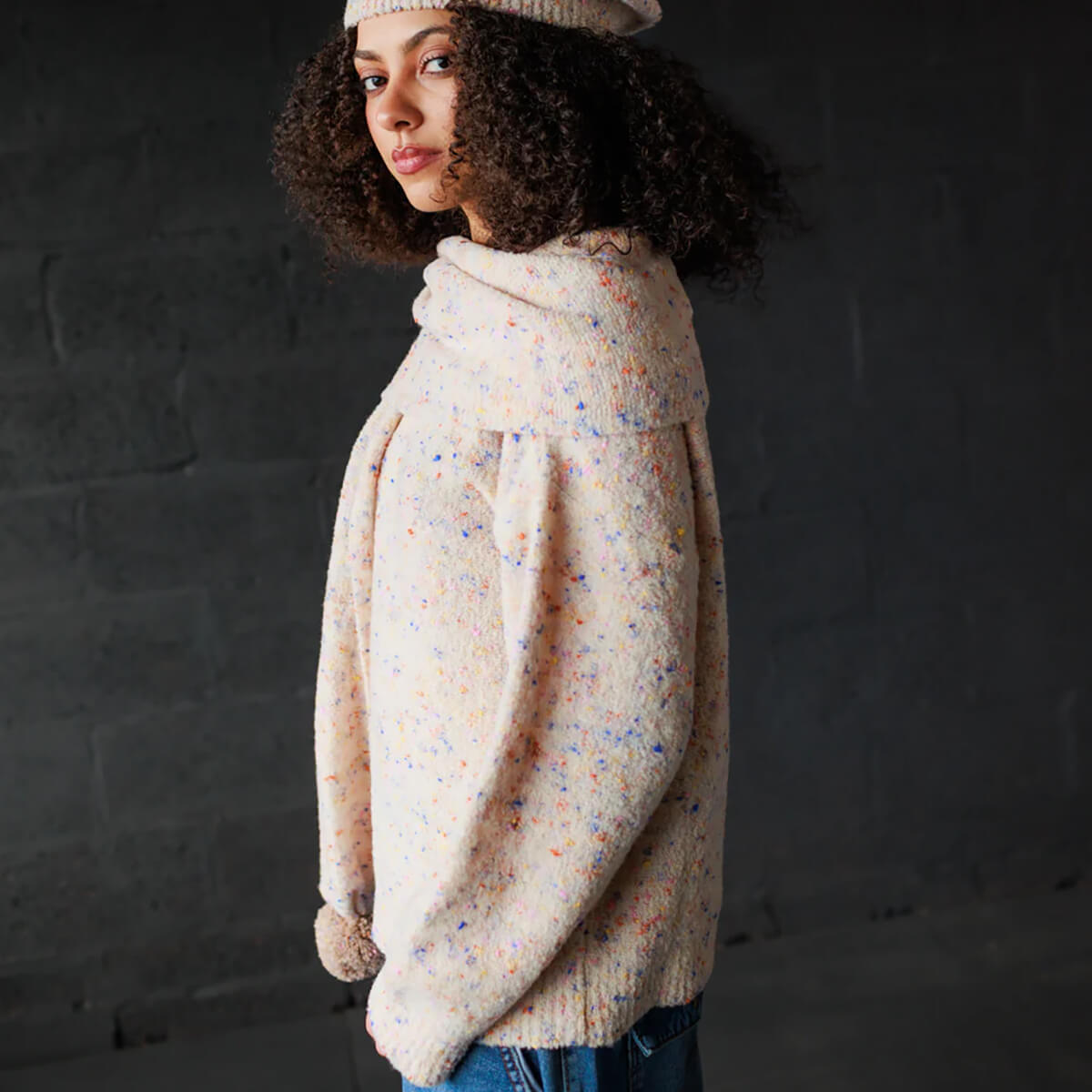 Women's Sprinkles Pullover by Mabli. A relaxed-fit jumper in an airy light yet cosy bouclé yarn. Knitted in reverse stitch to accentuate the rainbow sprinkles twisted through the yarn.