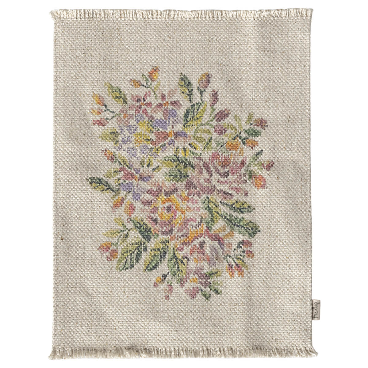 Large floral rug by Maileg.  Every home needs small interior items to complete the setting. This small striped rug can be used where you find it suitable. Could be a door mat or a decoration on the floor in any room in the doll houses.