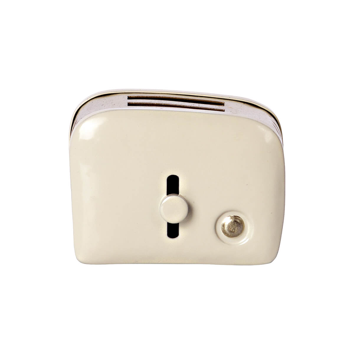 Miniature toaster and bread by Maileg.  It is delicious to start the day with a toasted slice of bread. The metal toaster comes with 2 pcs of bread included. It is assembled by hand which means that small variation may occur.