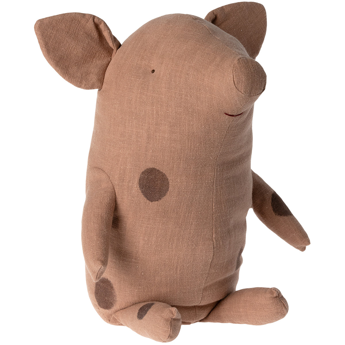 Truffle Pig by Maileg. The classic truffle pigs have got a new bigger size in the family. This big truffle pig is made in a ramie/cotton blend material which ensure a soft handfeel and has printed dots on body. It fits perfectly into small arms for a friendly hug.
