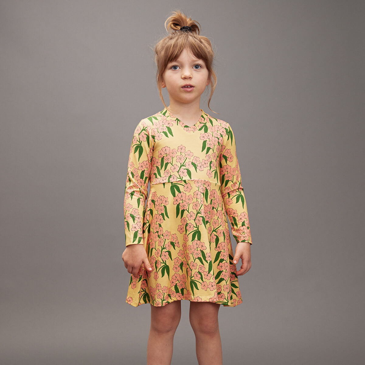 Alpine Flowers AOP Dress in Yellow by Mini Rodini