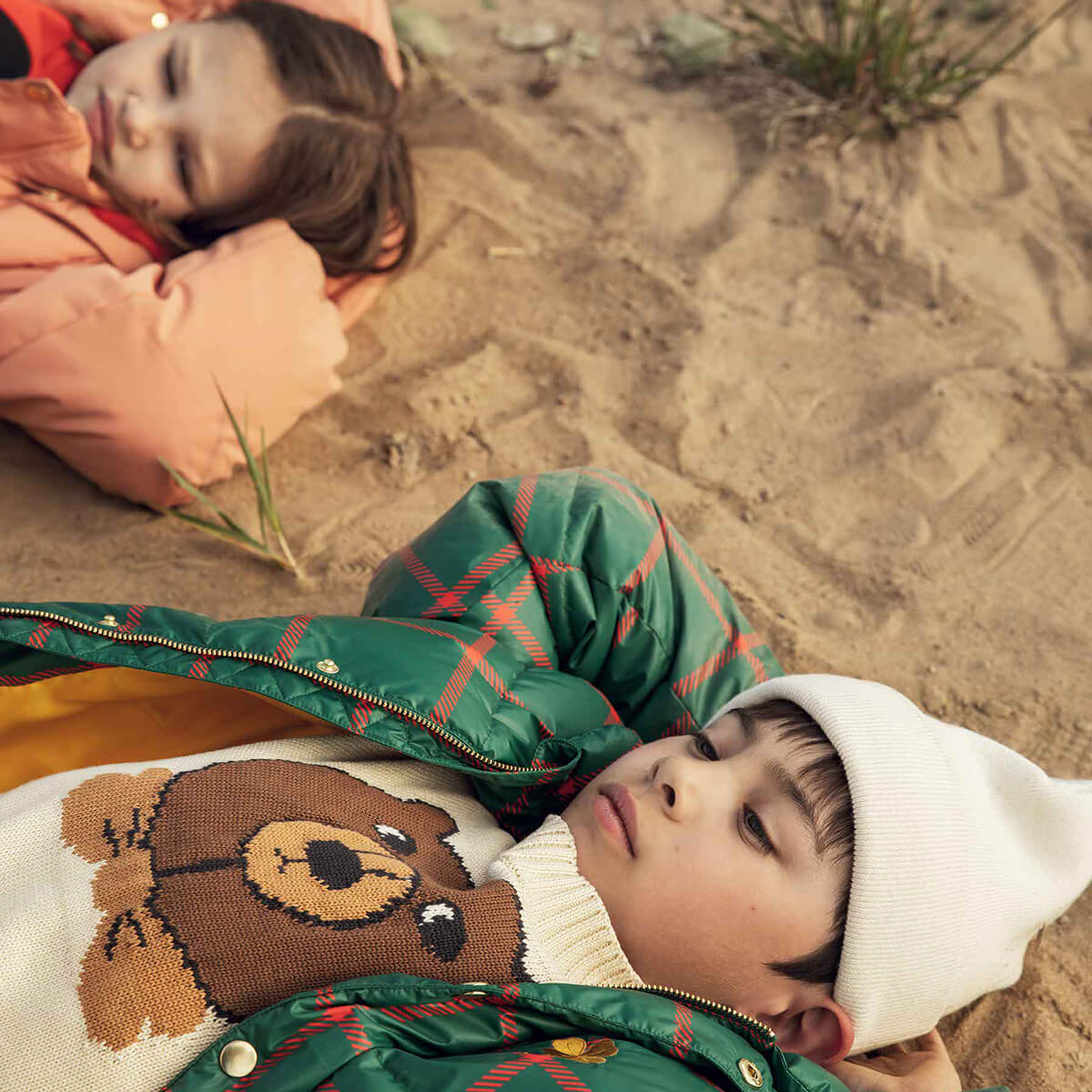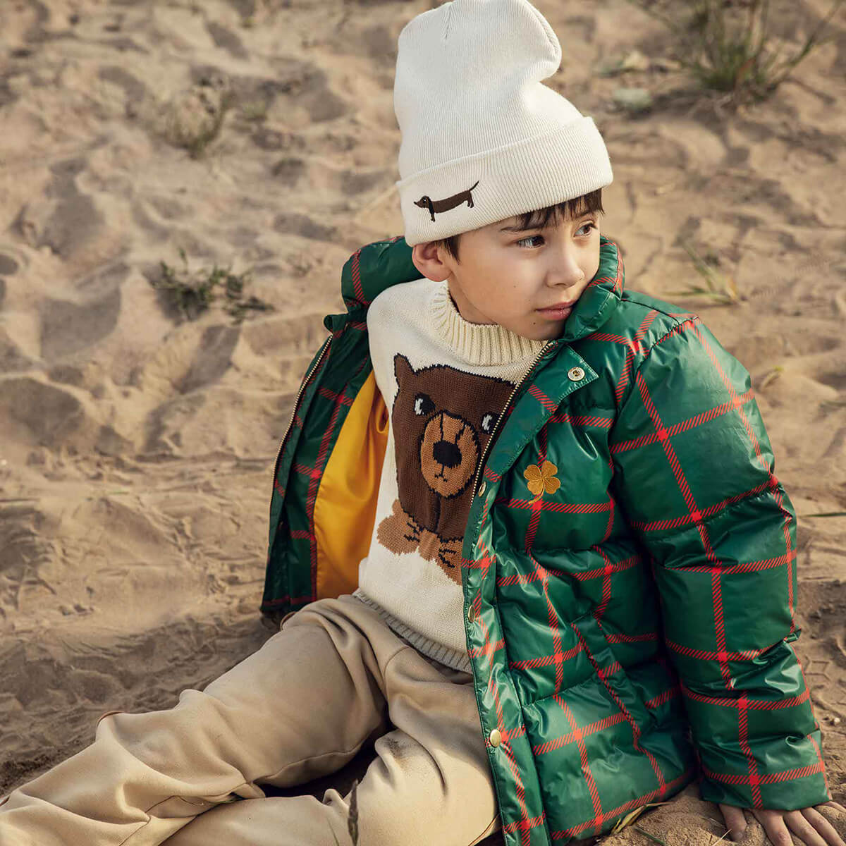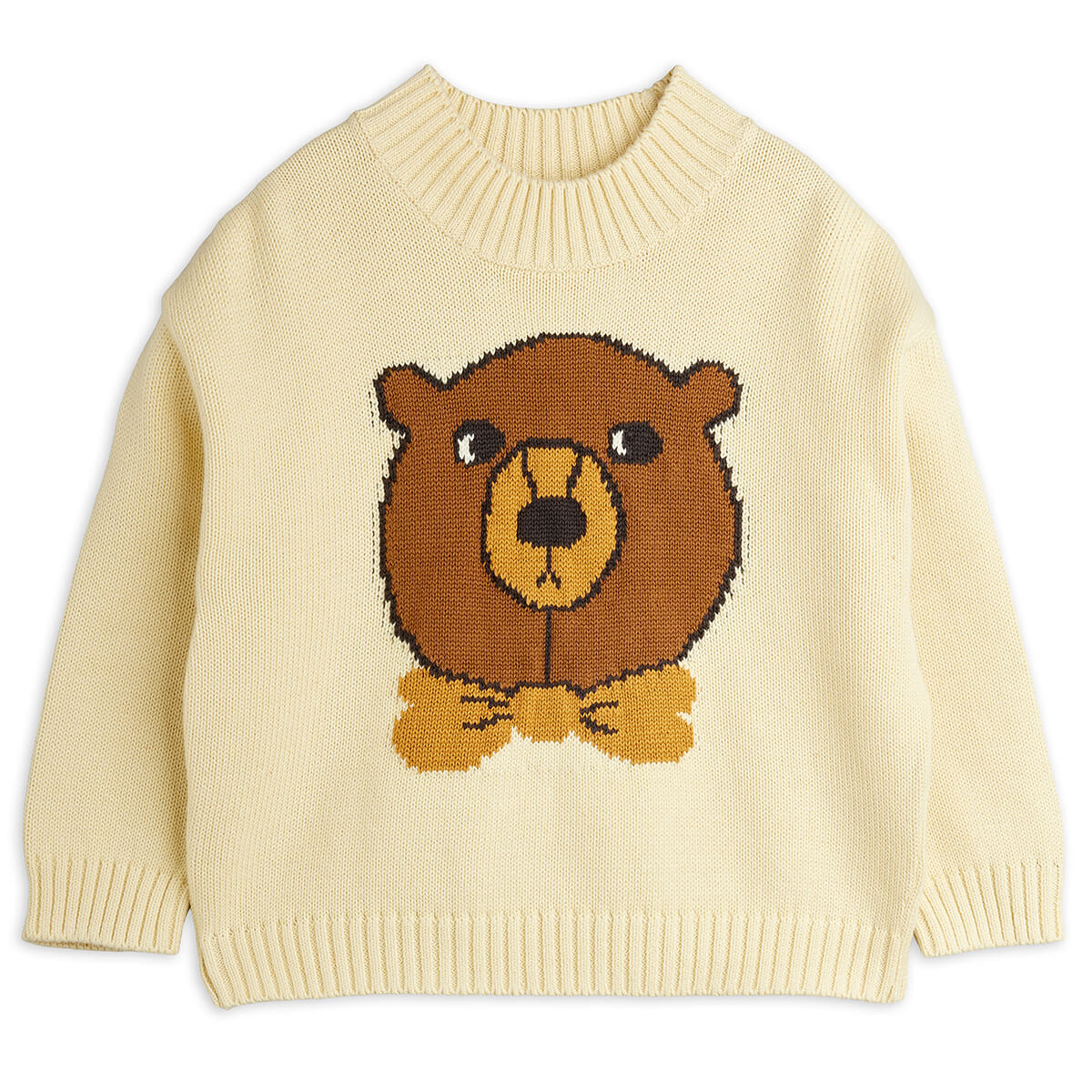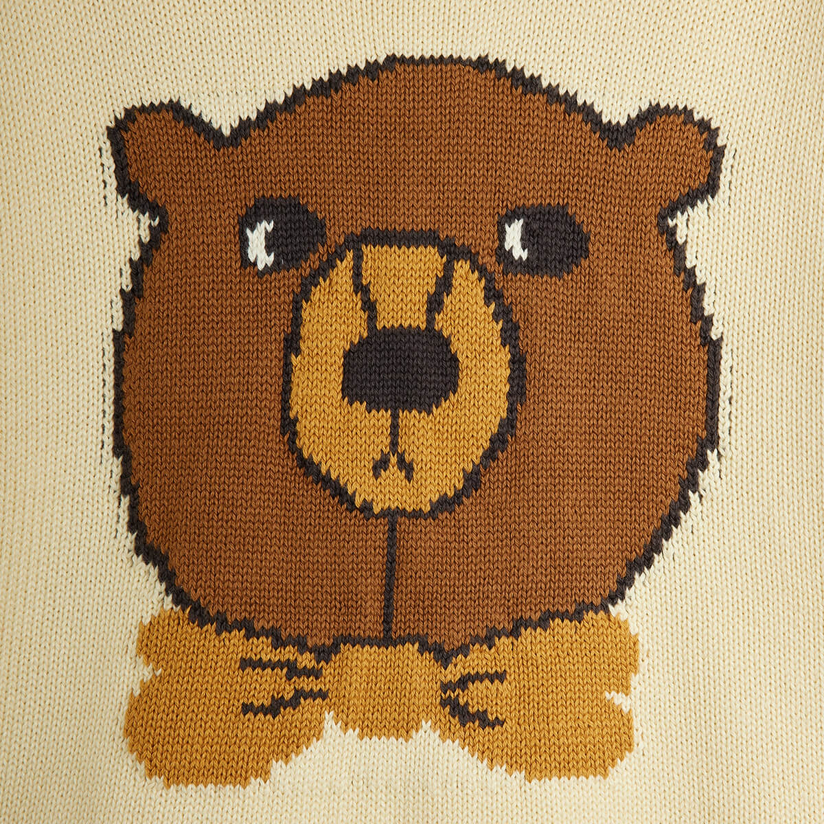 Bear Intarsia Knit Sweater by Mini Rodini. Relaxed fit knit jumper in off white made from 100% organic cotton, featuring a large bear design on the chest, a relaxed fit and ribbed edges.