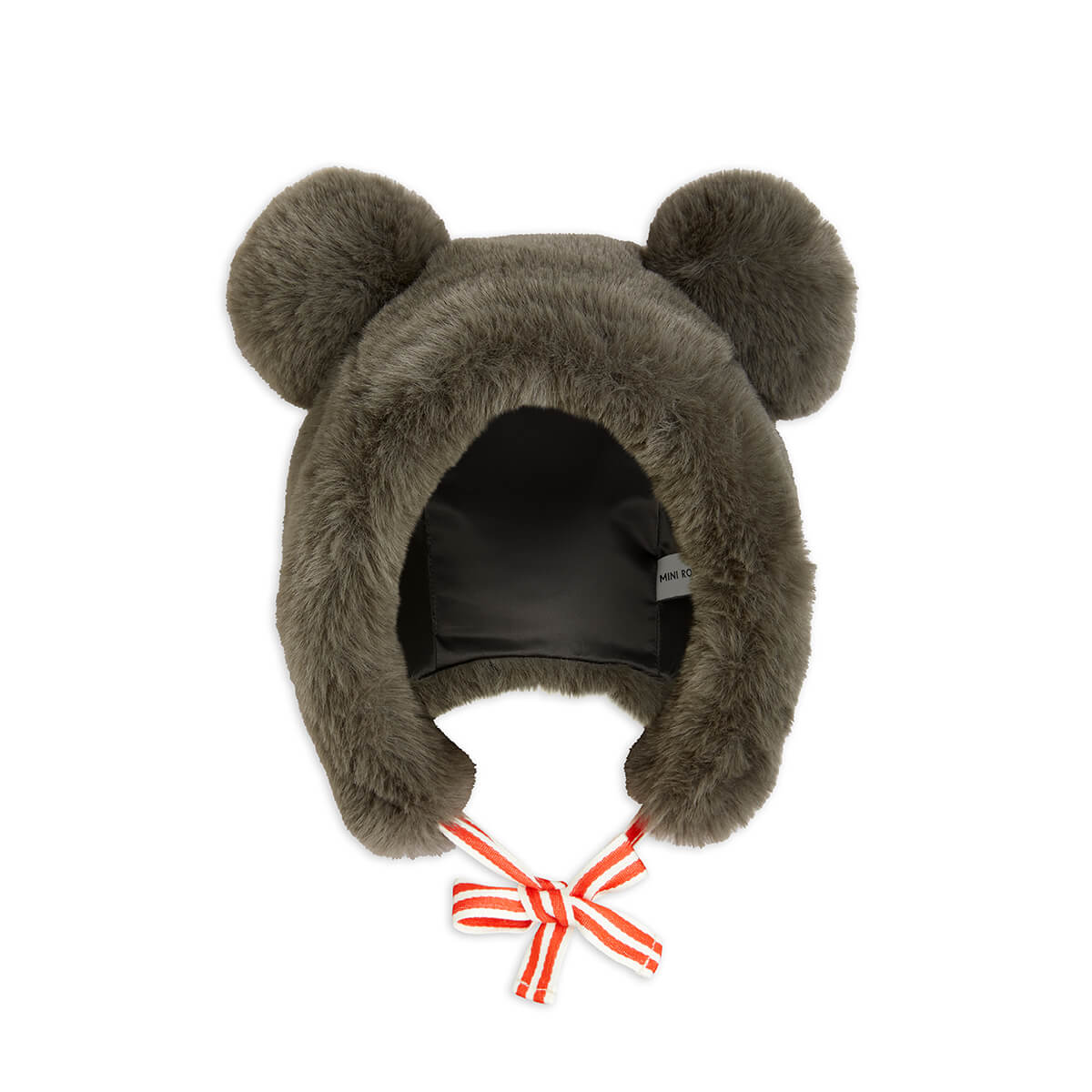 Faux Fur Ear Hat in Grey by Mini Rodini