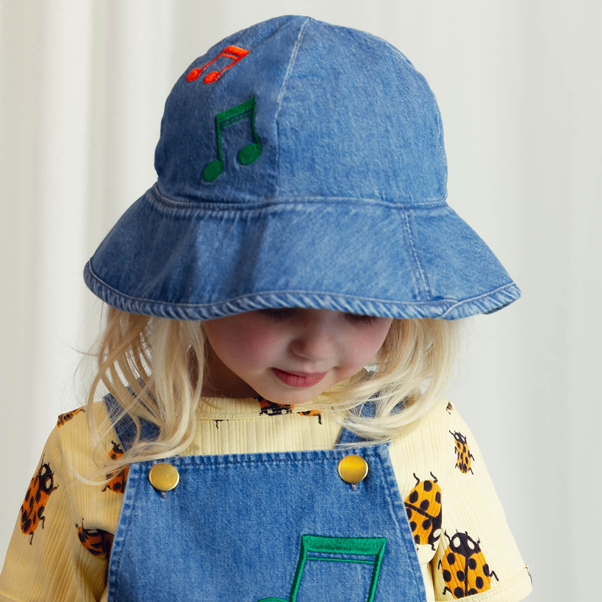 Note Embroidered Sun Hat by Mini Rodini - Last One In Stock - 52/54 (3-9 Years)