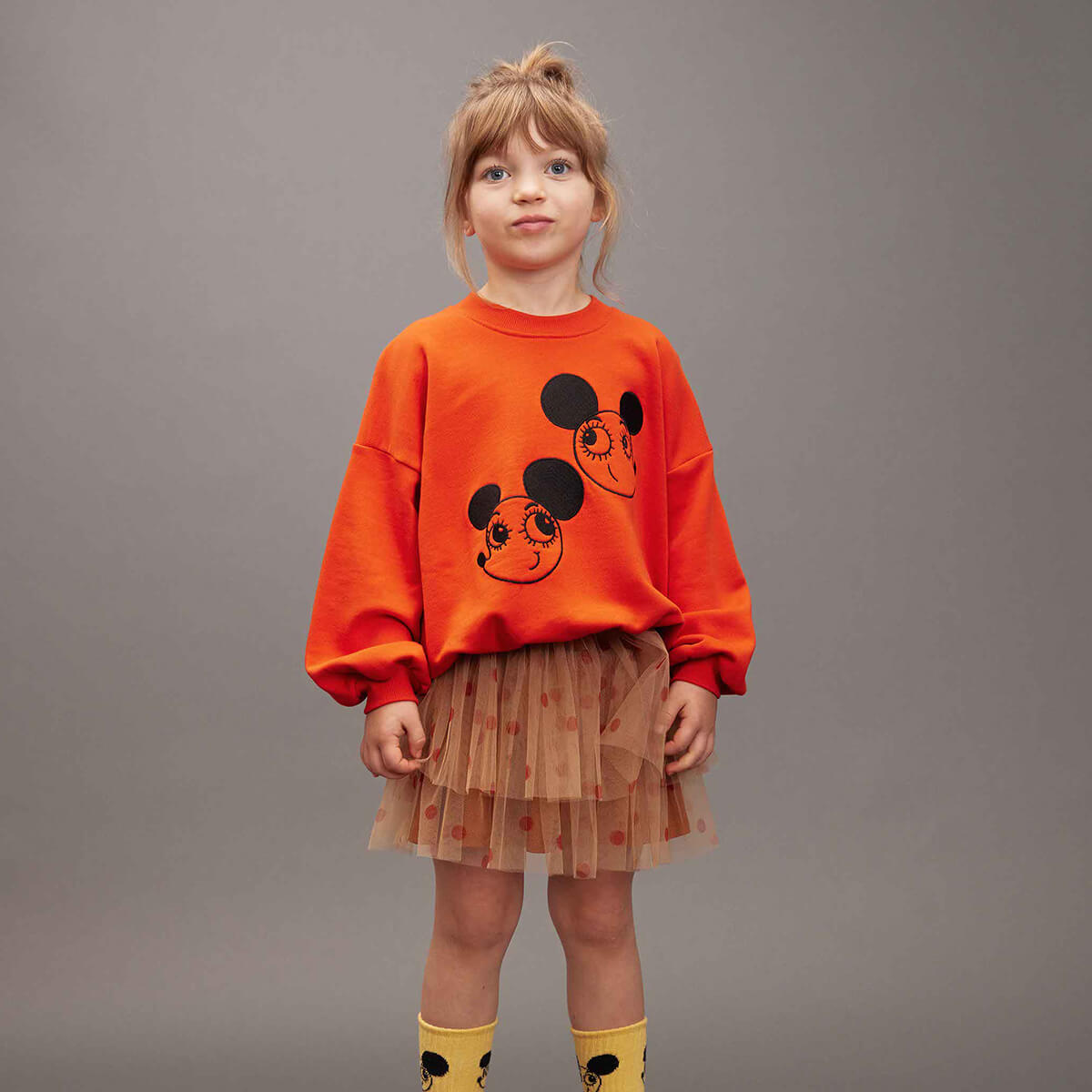 Ritzratz Embroidered Sweatshirt by Mini Rodini. Red sweatshirt made from 100% organic cotton featuring a ribbed neck and hem, dropped shoulders and a relaxed fit.
