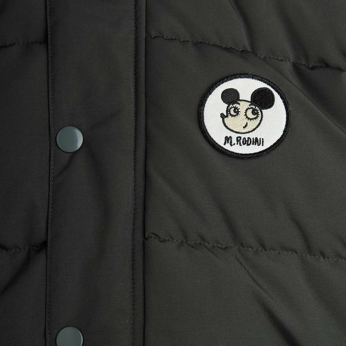 Ritzratz Patch Hooded Puffer Jacket by Mini Rodini. Black water repellent puffer coat with a removable hood, ribbed cuffs and pockets.