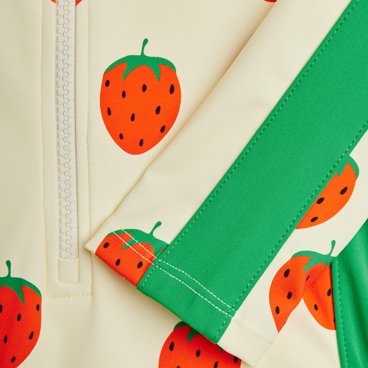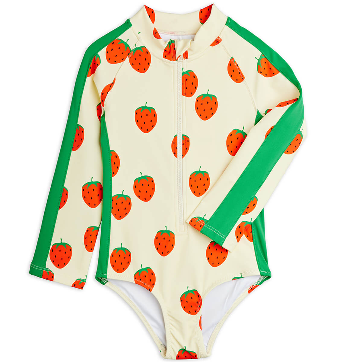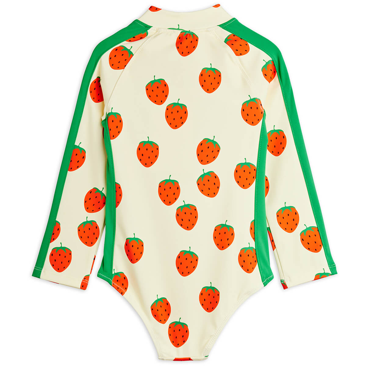 Strawberries Long Sleeve Swimsuit in Off White by Mini Rodini