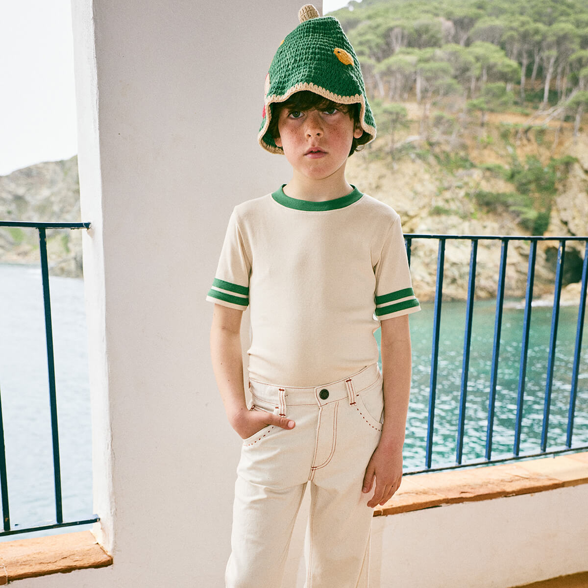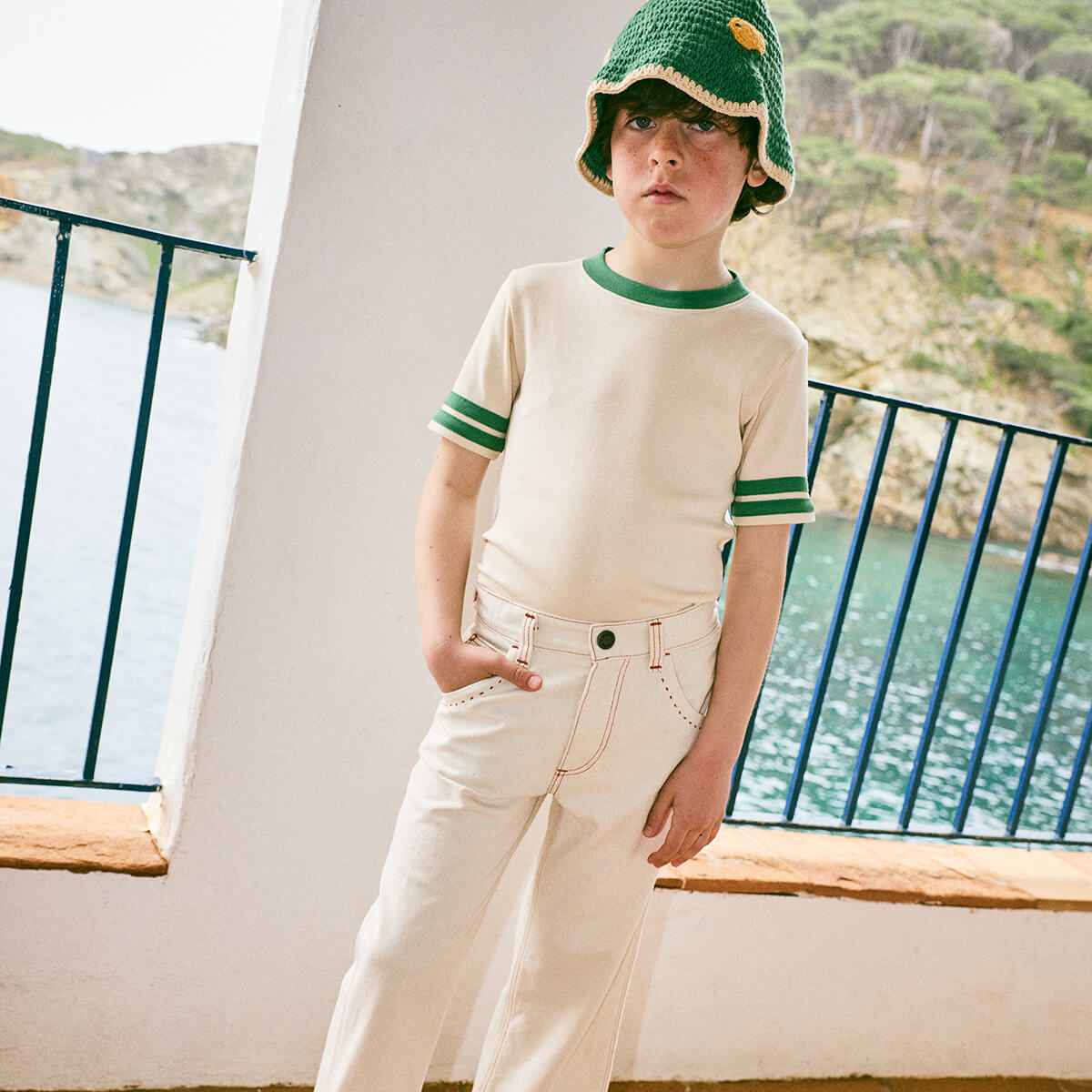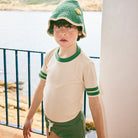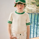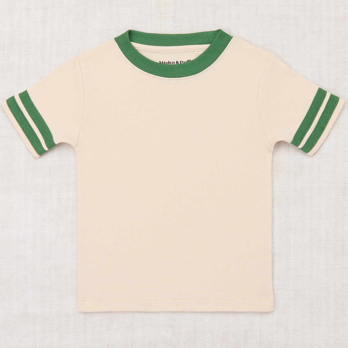 Rec Tee by Misha & Puff. A classic slim-fit ringer t-shirt in organic Pima cotton, with contrast appliqué striped sleeves and a contrast neckline.
