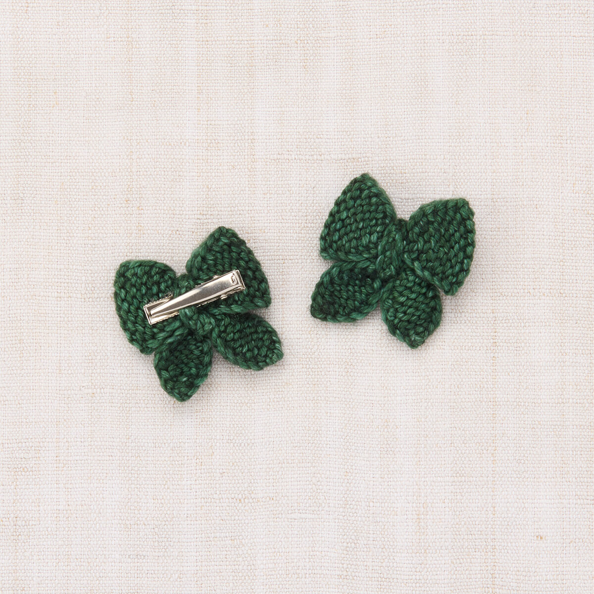 Baby Puff Bow Set by Misha & Puff. A Misha & Puff classic, hand-knit bows on alligator clips. The Baby Puff Bow Set is the smallest hair accessory made for matching your favorite knitwear, adding a pop of colour, or gifting to a friend.